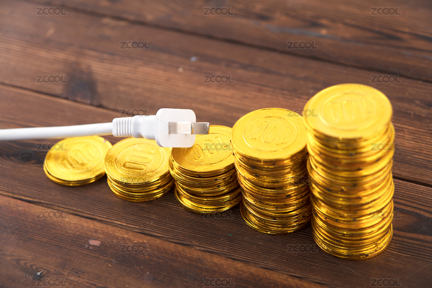 金色的硬币和充电插头