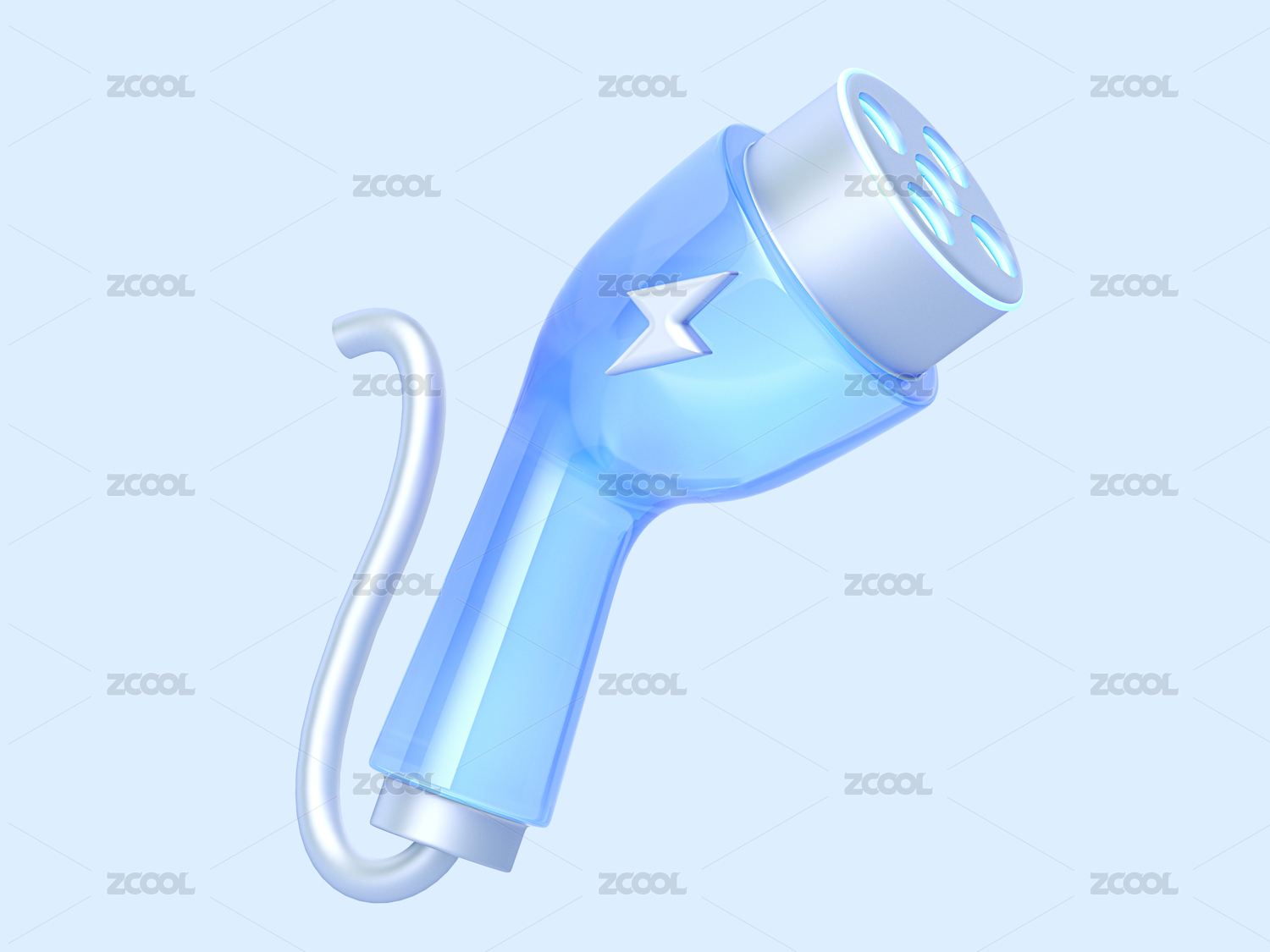 科技蓝白充电枪插头智能车机3D图标