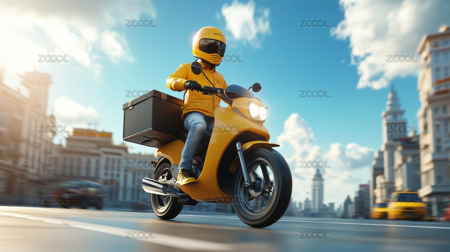 手持快递包裹的女性外卖员伸出大拇指做手势