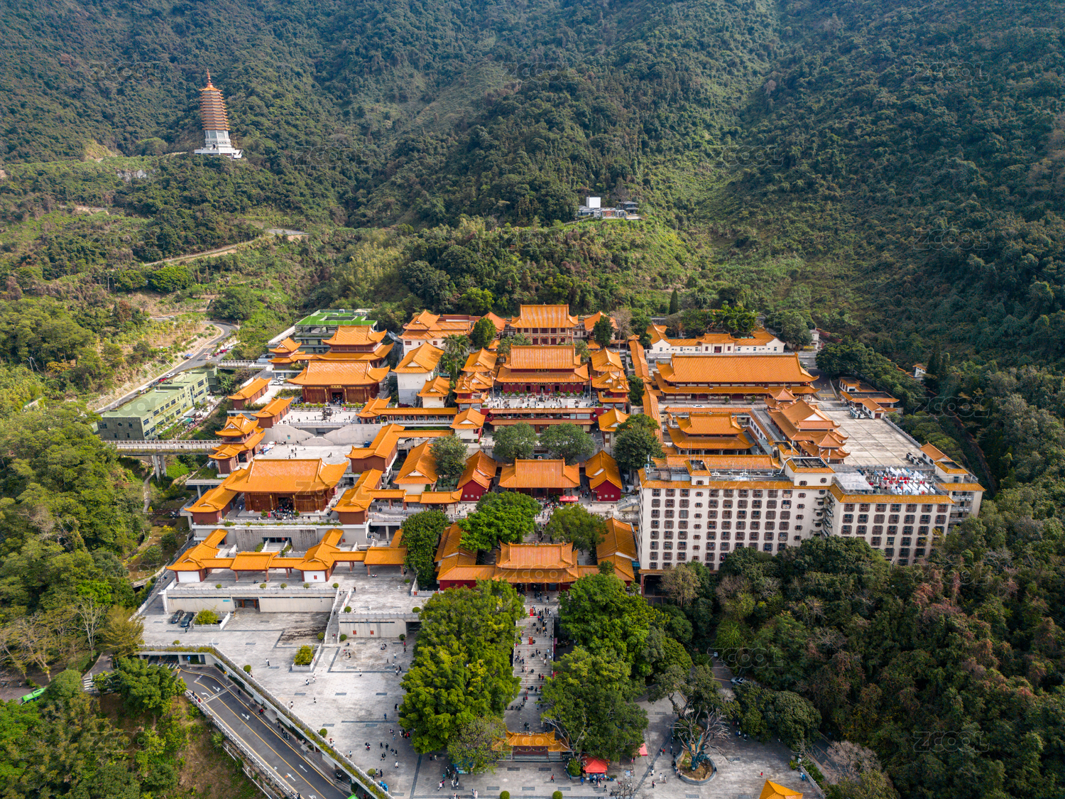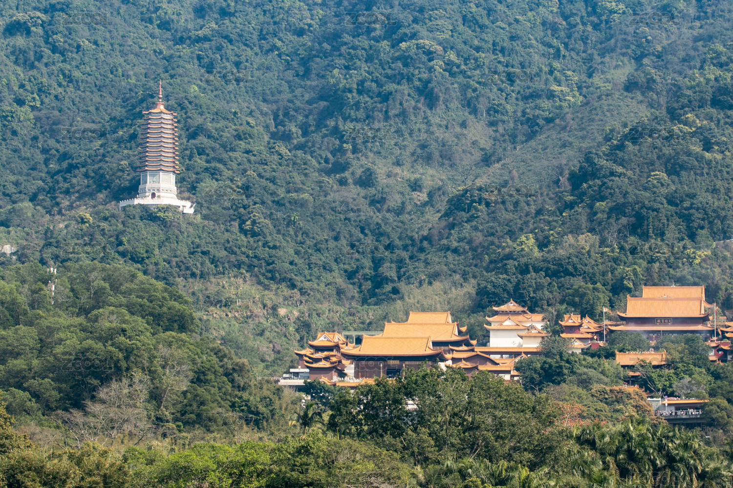 深圳仙湖植物园和弘法寺全景