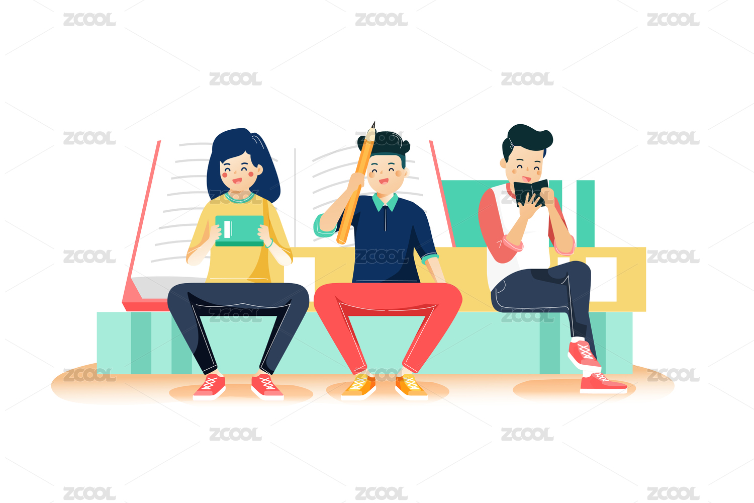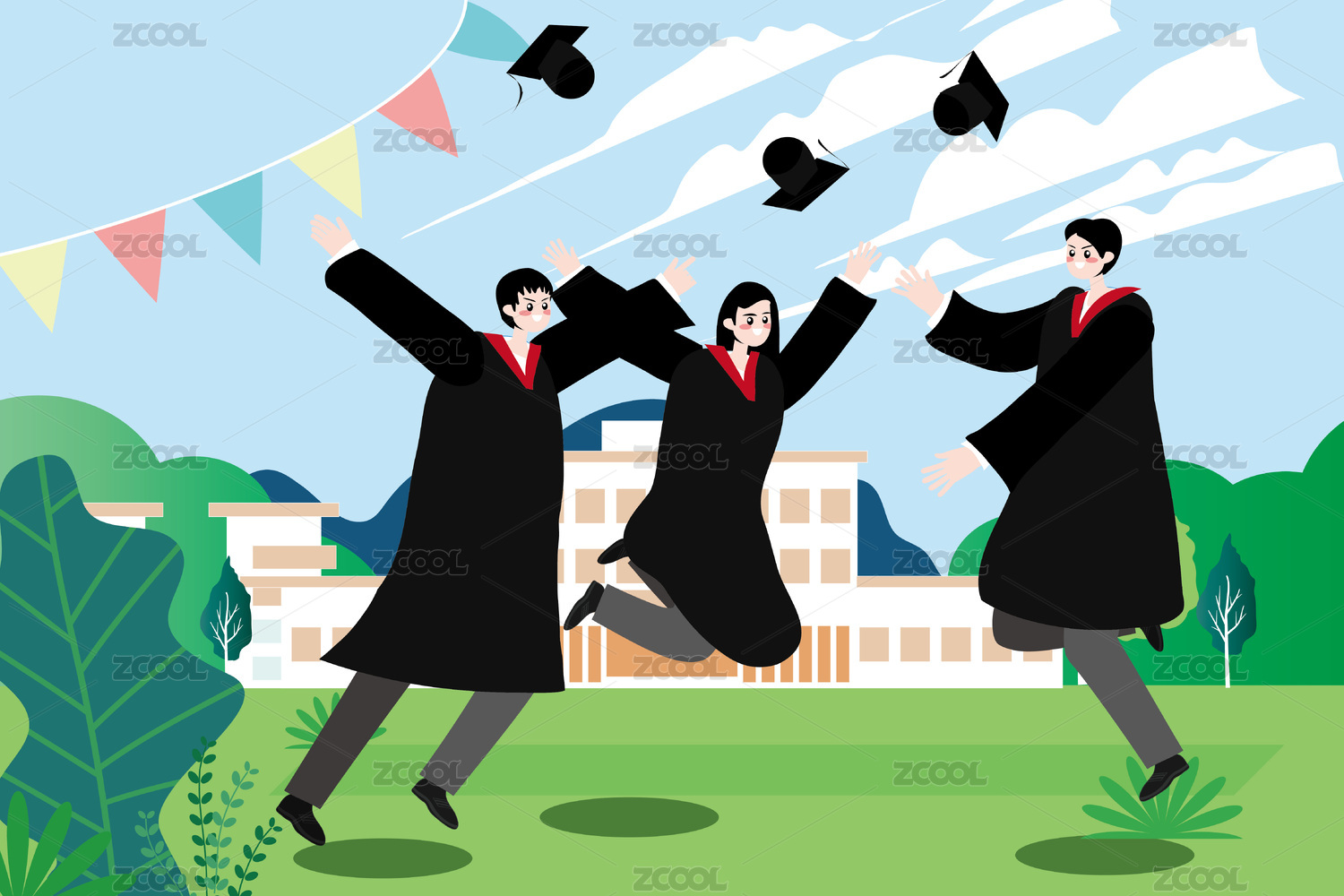 大学生毕业典礼青少年校园矢量插画