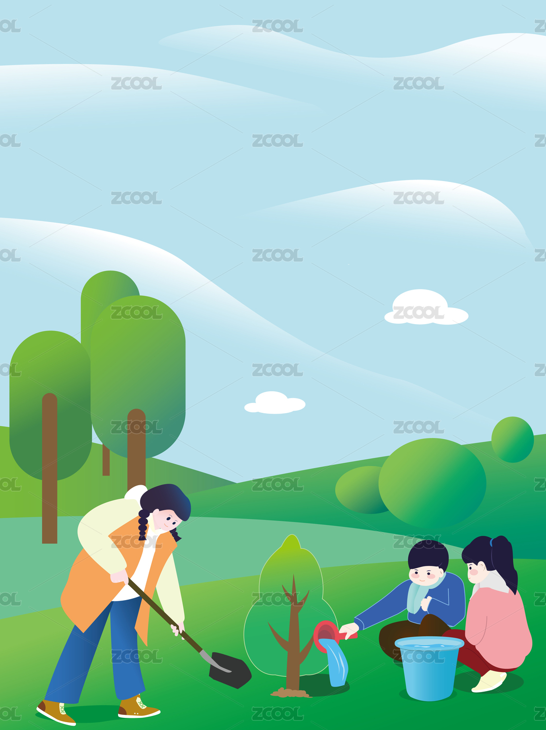 植树节青少年儿童去树林种树