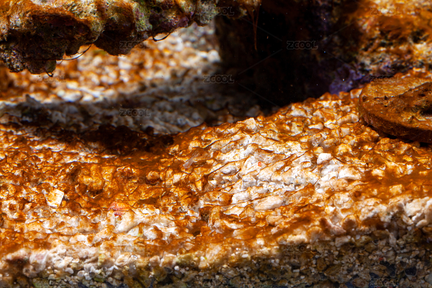 俯拍海缸失衡后沙子上蔓延的红泥藻