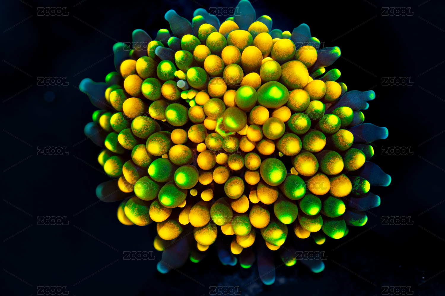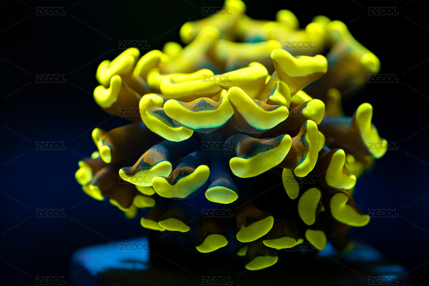 黑暗中闪着黄绿黄绿的ric菇珊瑚