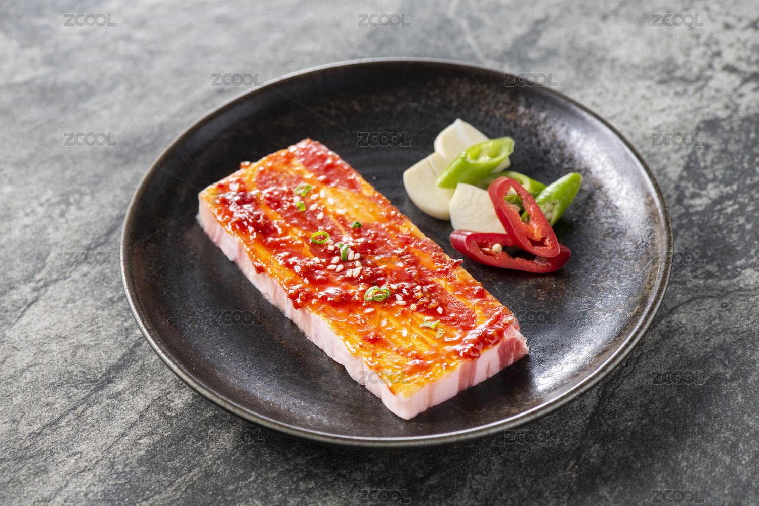 放在盘子里的二尺猪五花肉