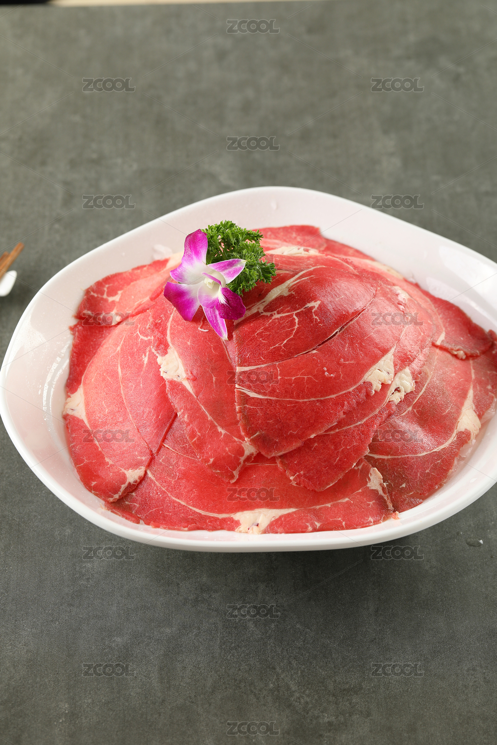 手上端着一盘切片的进口牛肉