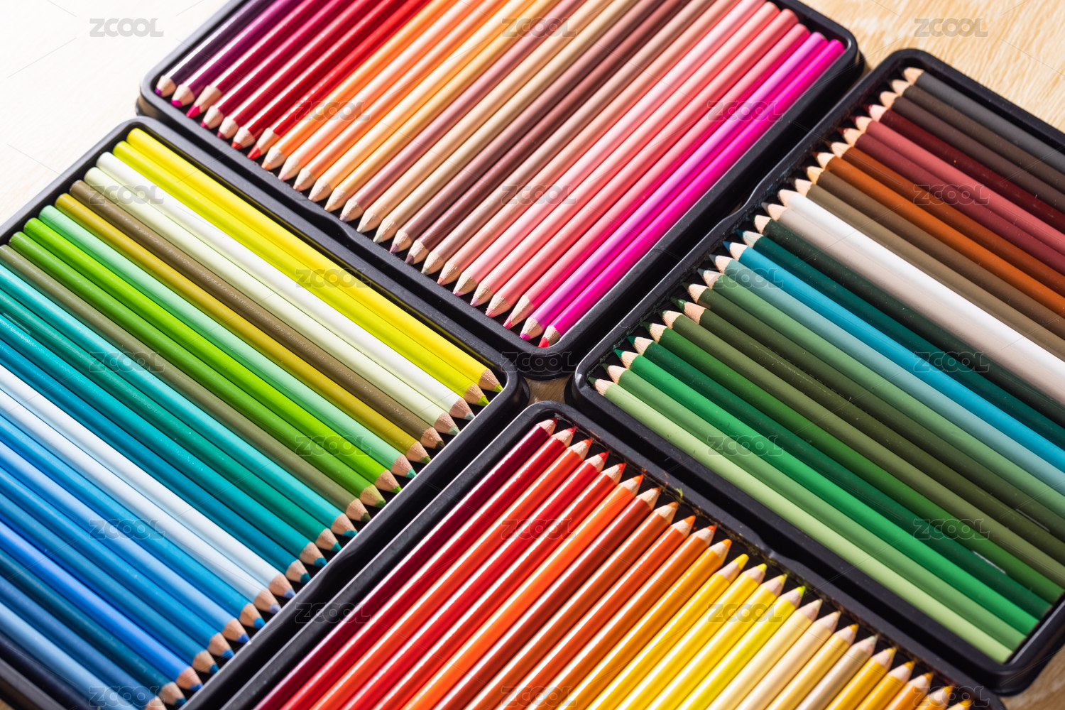 排列整齐有序的五颜六色的彩色铅笔
