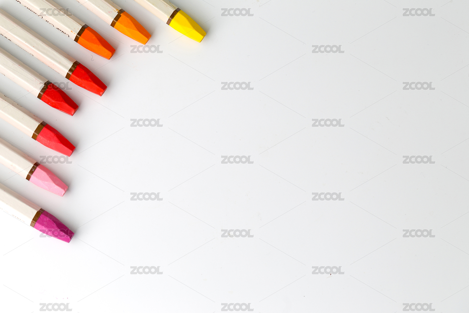 白色背景上整齐排列的油画棒