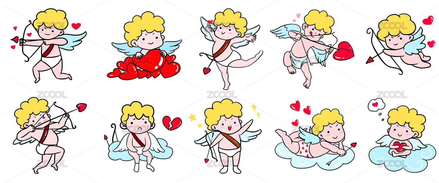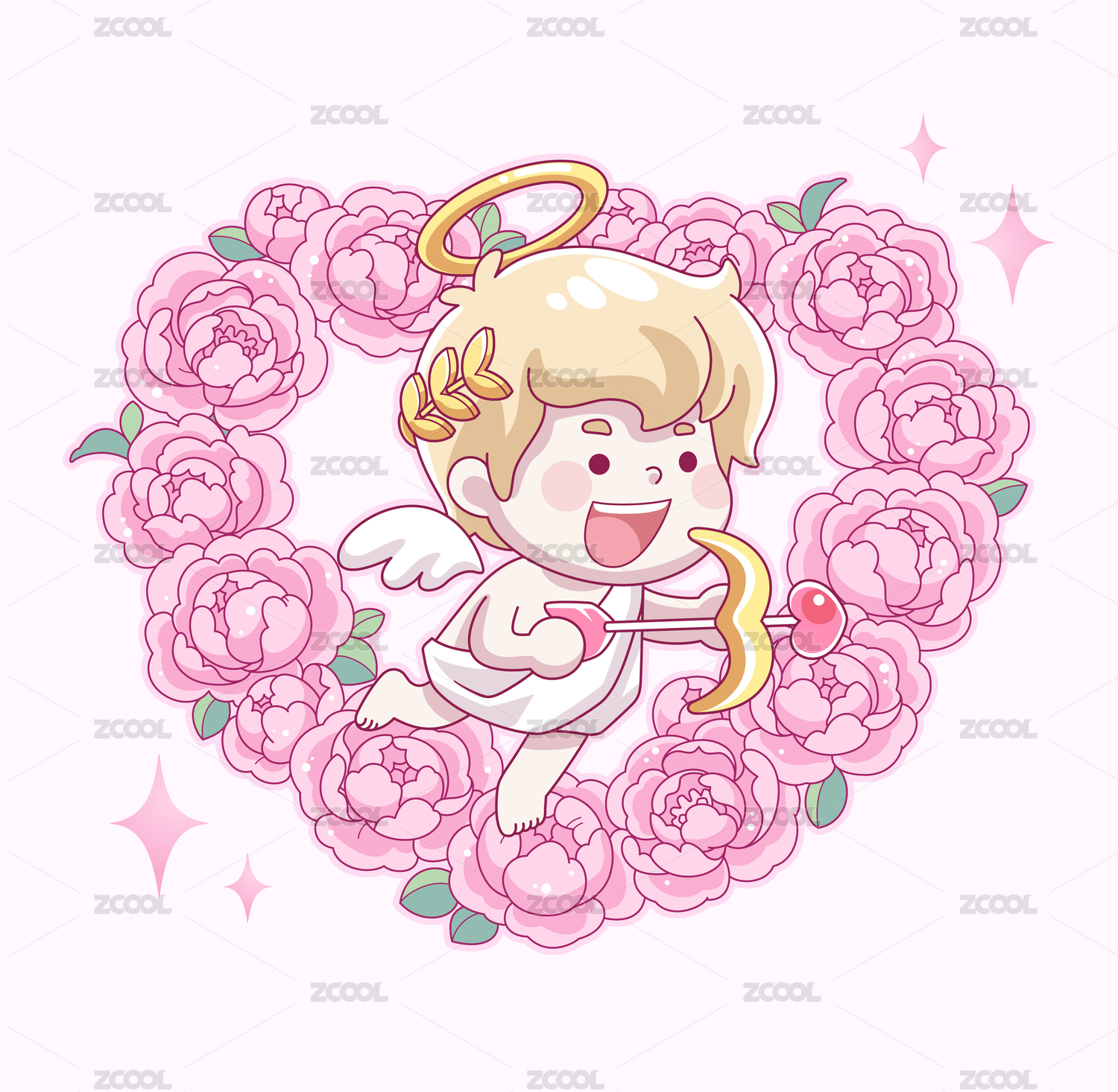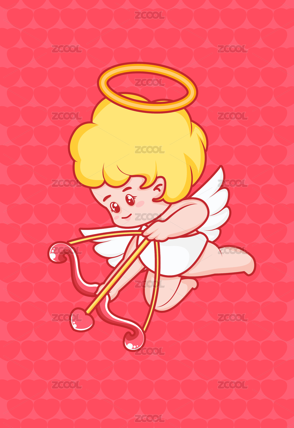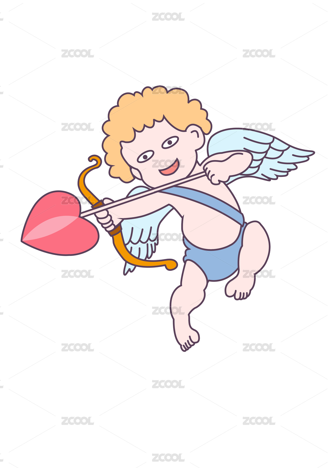 可爱爱神丘比特开怀大笑漂浮在云彩