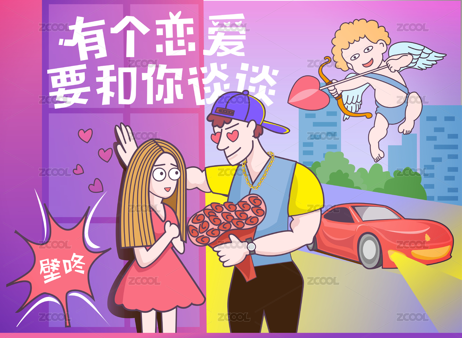 恋爱 壁咚 男 女 美女 情人节 七夕 情侣 撩妹 汽车 丘比特 爱 爱心 心 帅哥 美女 玫瑰 绚丽 紫色 浪漫 喜欢 爱情