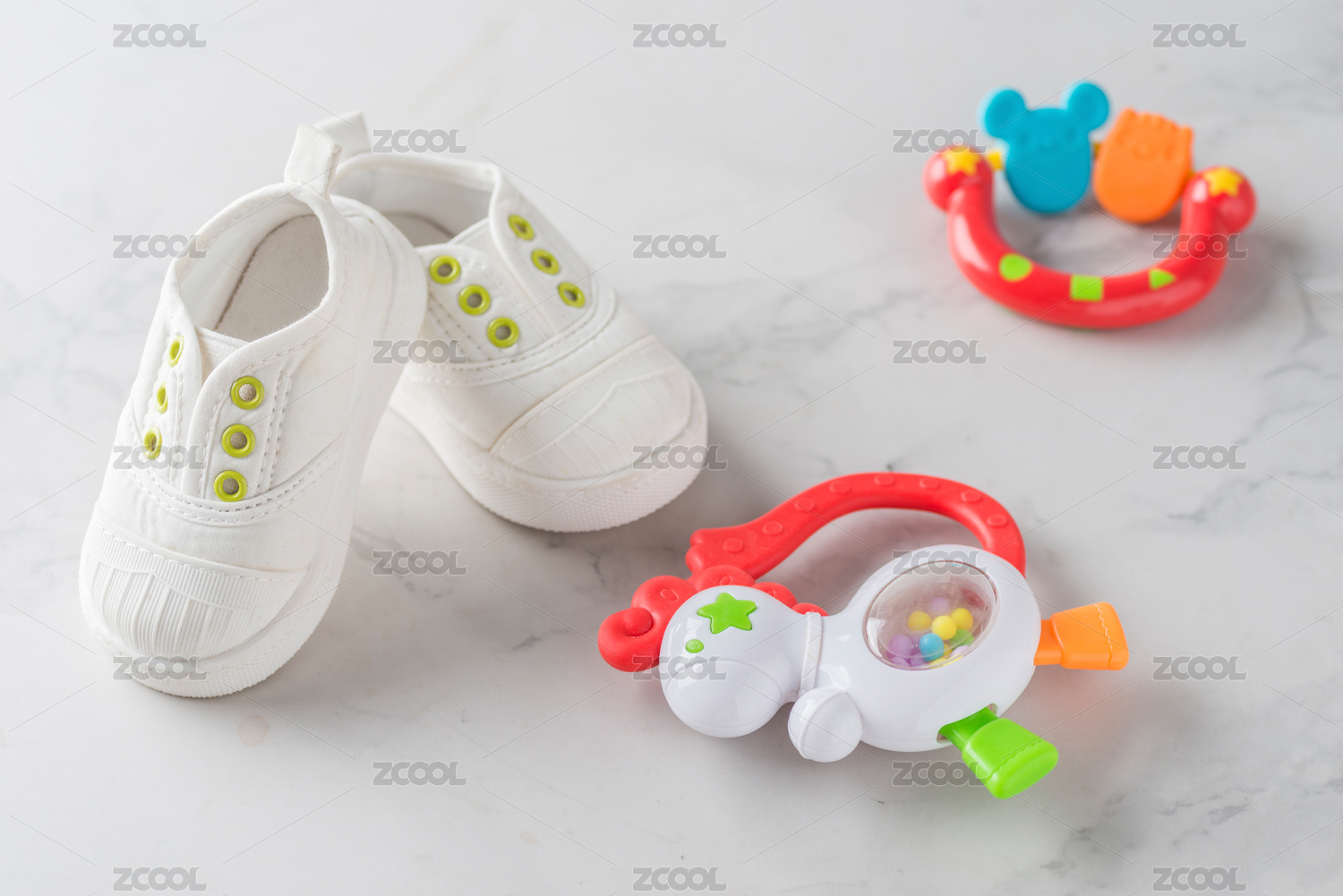 白色童鞋和硅胶磨牙棒咬咬胶玩具