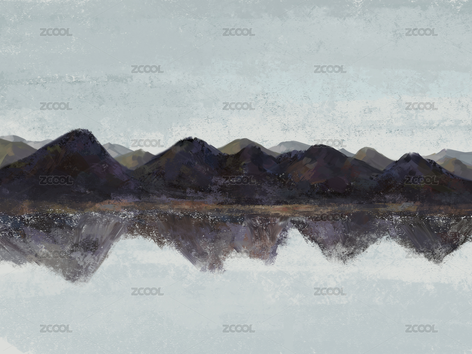 手绘油画质感风景水墨山水画