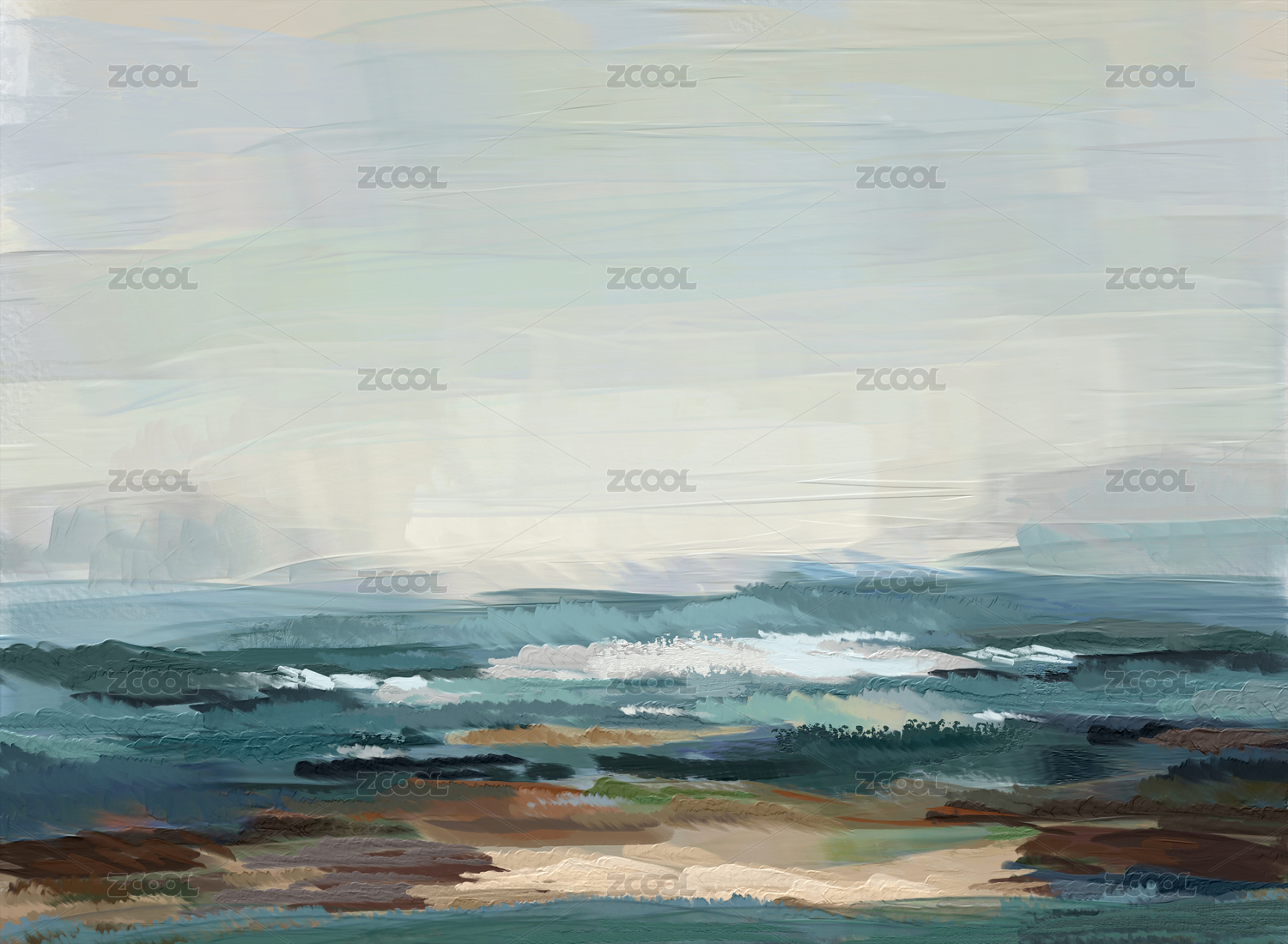 抽象大海油画写意色块