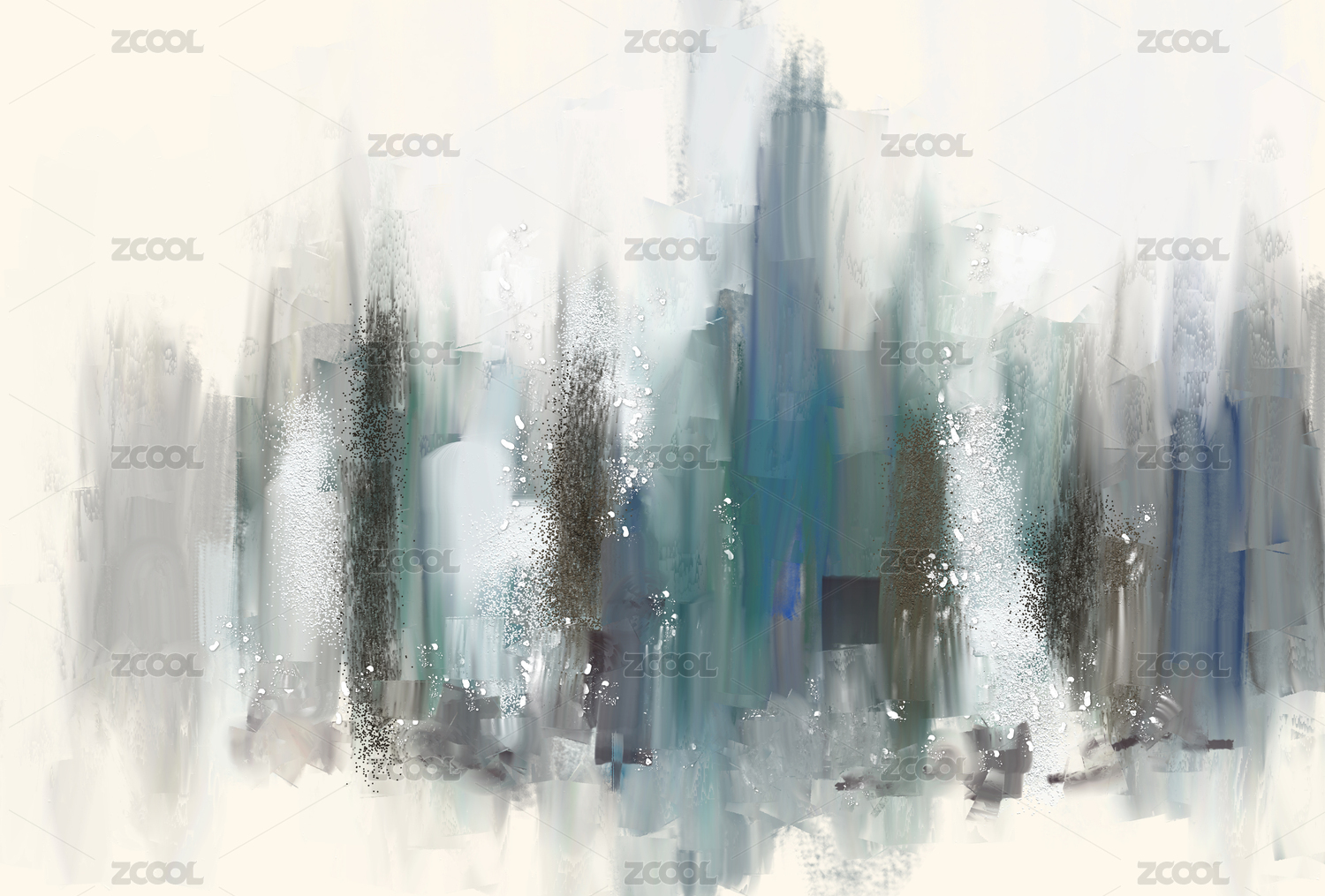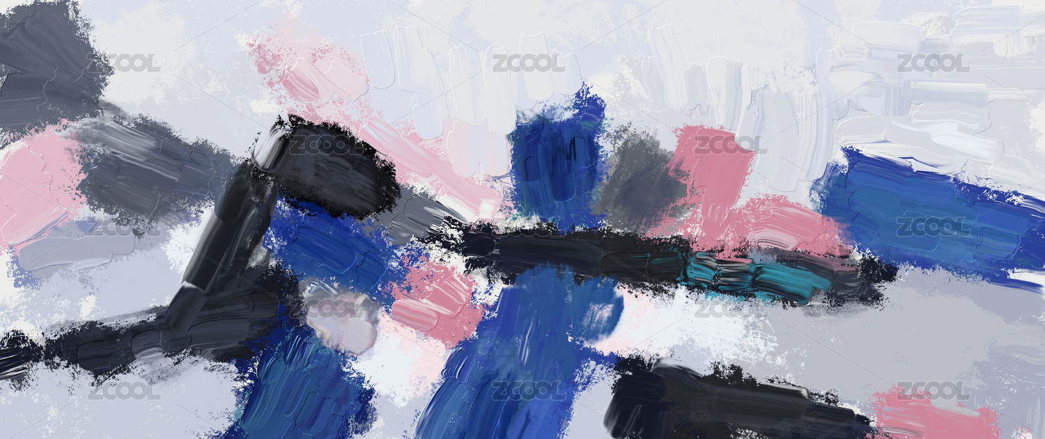 手绘抽象印象油画写意冷色调艺术背景装饰画