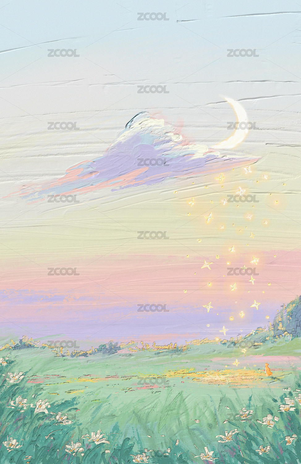 治愈唯美油画质感月亮天空背景
