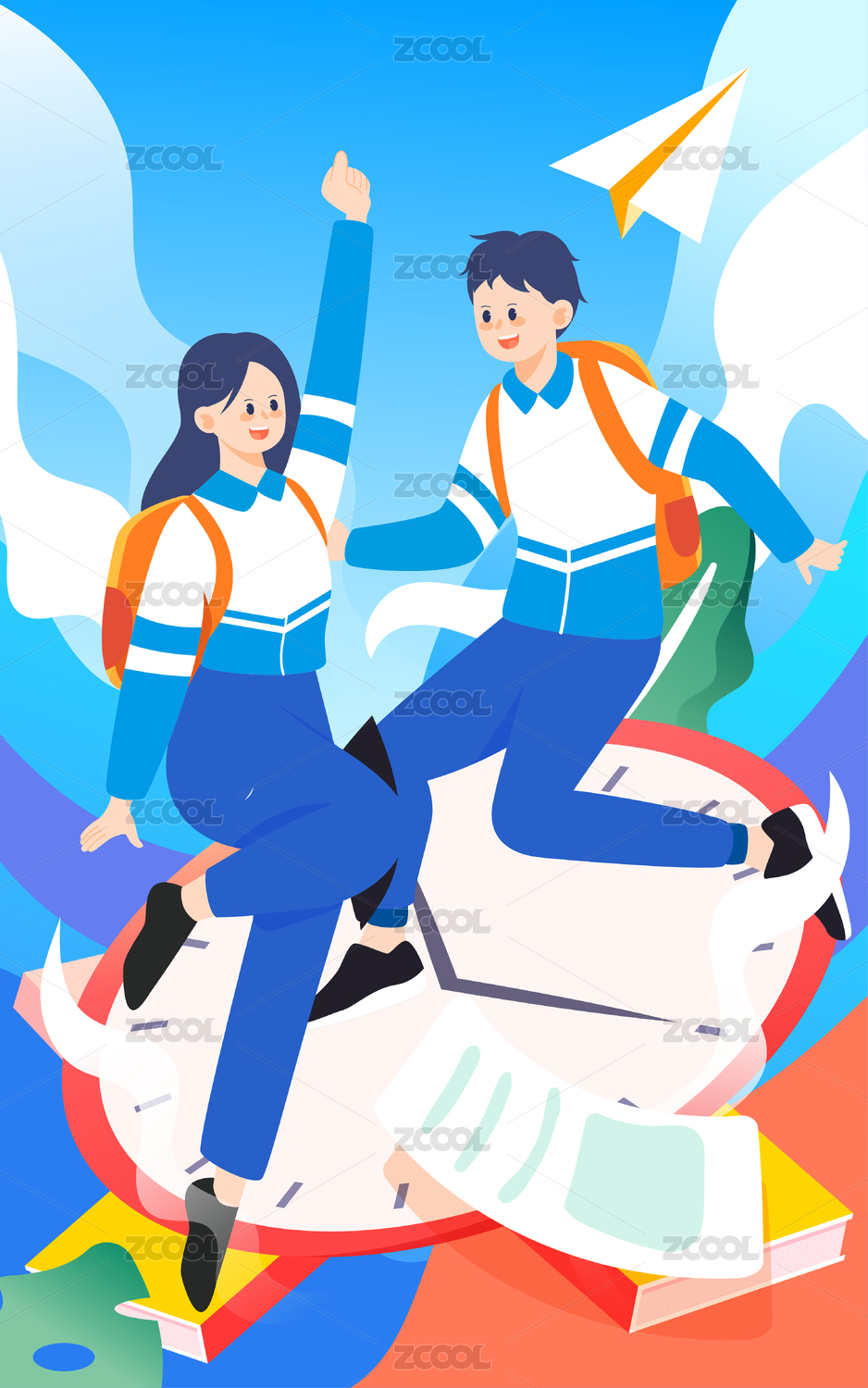 高考倒计时学生欢乐跳跃插画考试加油海报