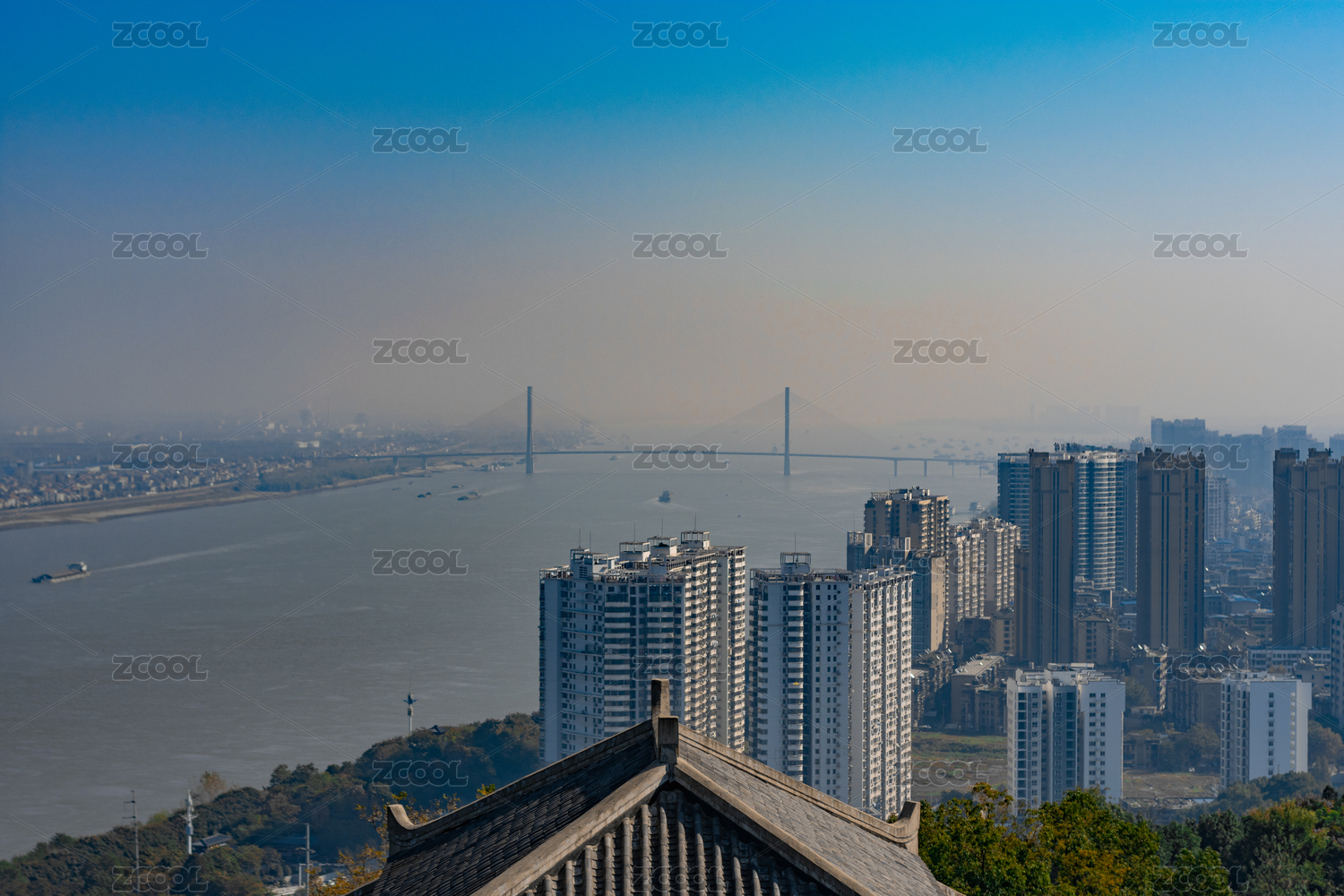 在鄂州西山风景区武昌楼拍摄鄂黄长江大桥