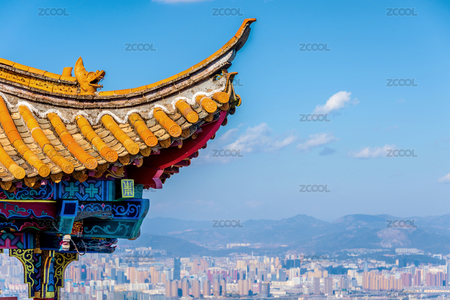 航拍云南昆明西山风景区山峰绿林及滇池湖泊