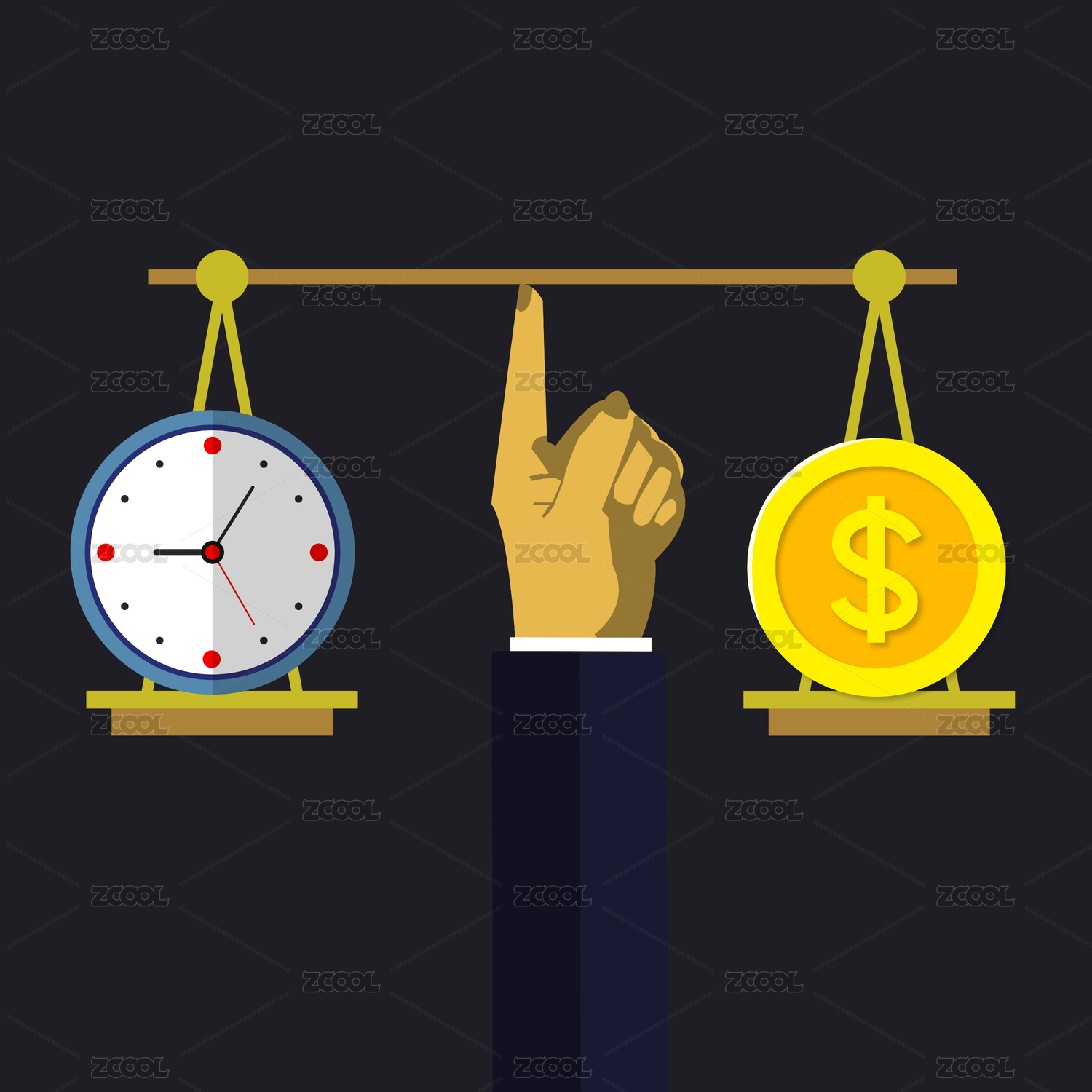 天平平衡时间和硬币金钱表达时间难买非常宝贵珍贵需要高效合理利用规划管理时间分配概念