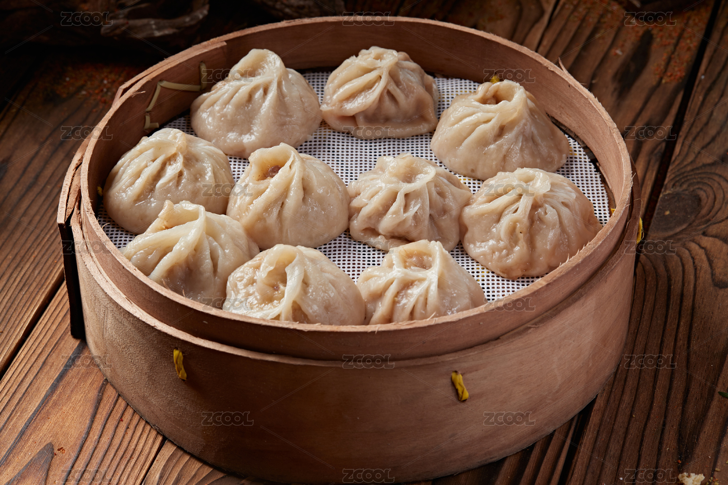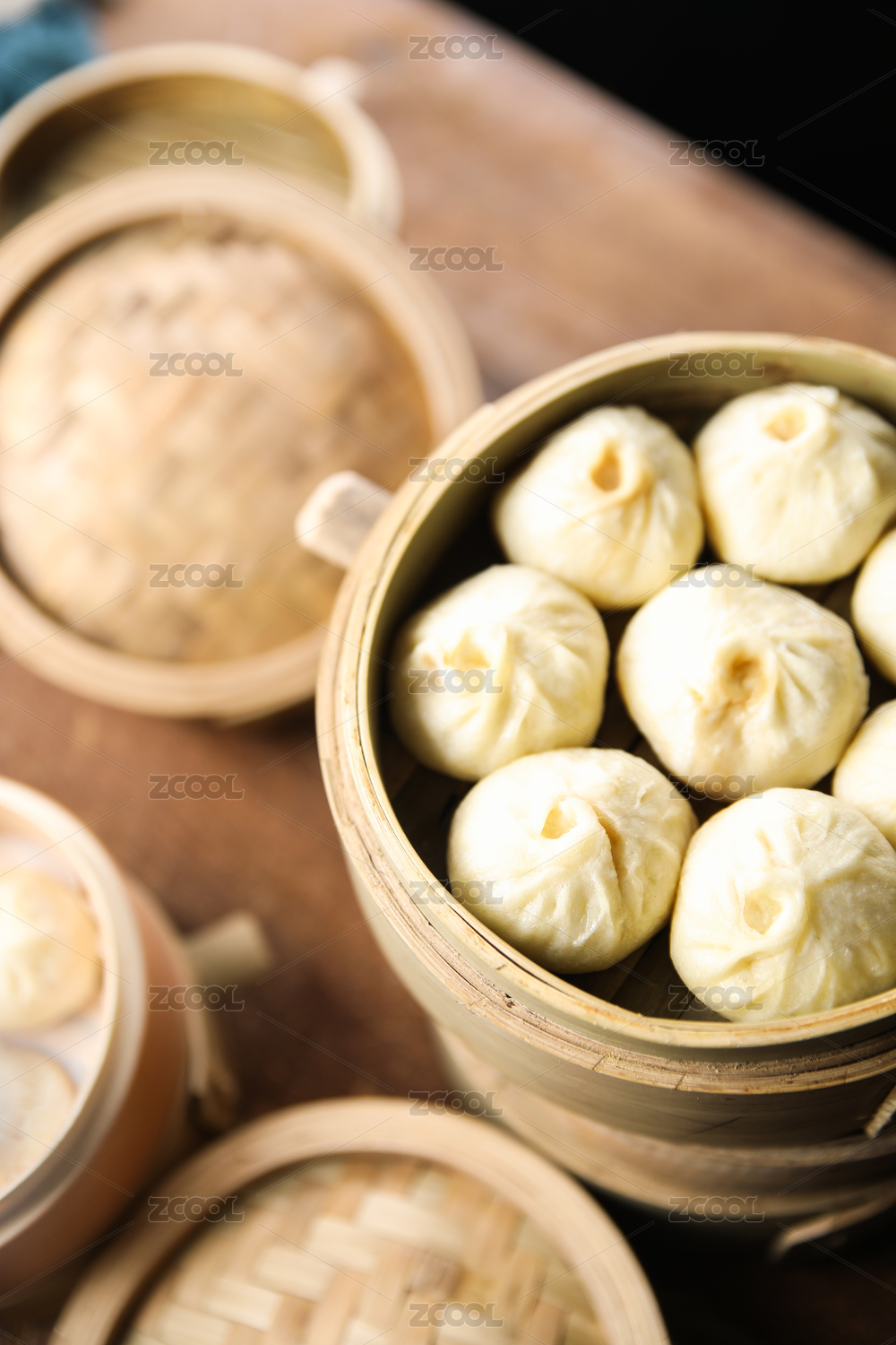 一笼小笼包的特写背景