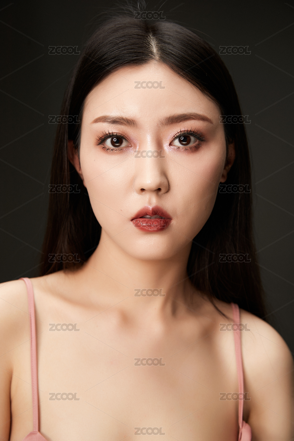 纯色背景中东方女性妆面照