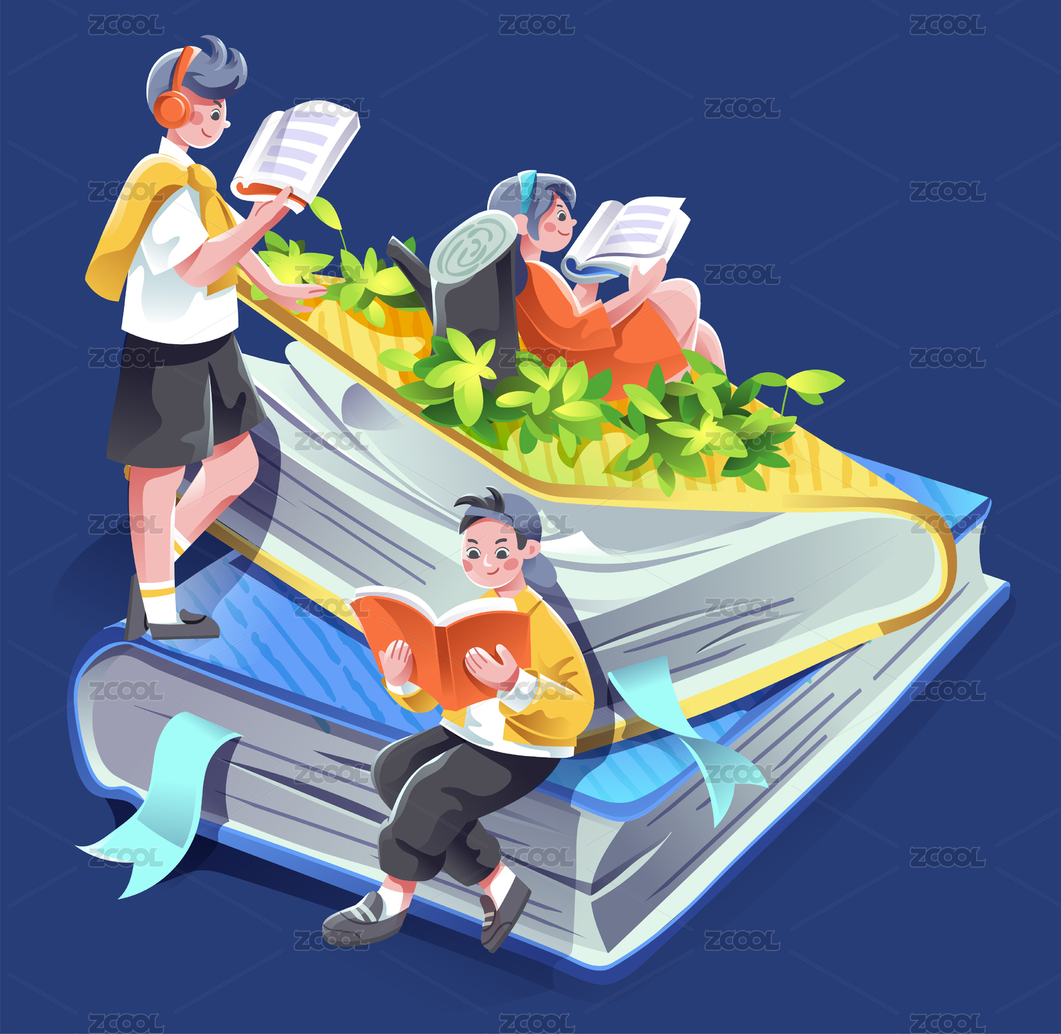 读书文艺绿植多肉盆景盆栽矢量线稿手绘插画