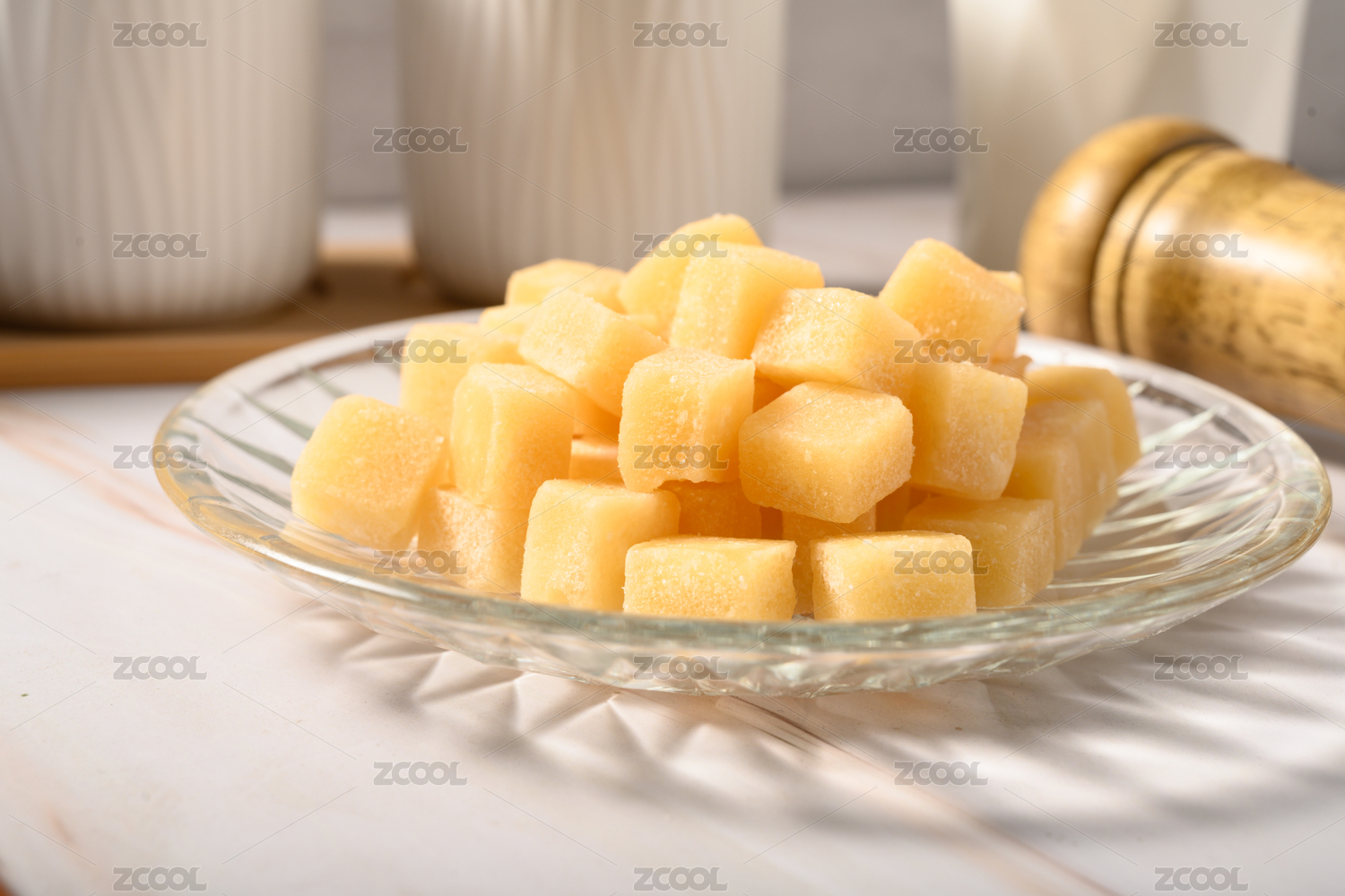 桌面上的盘子里的美味可口的百草梨膏糖