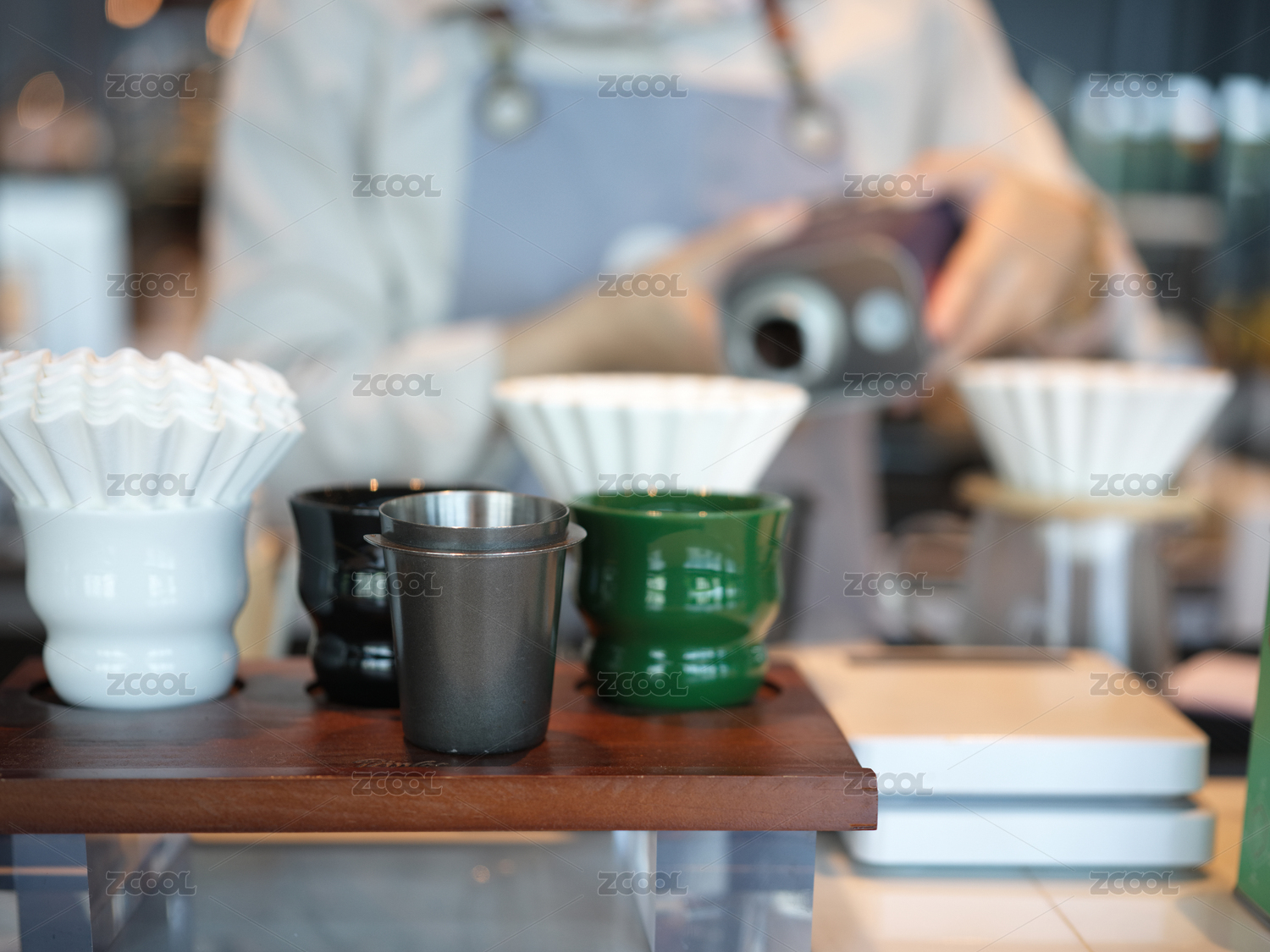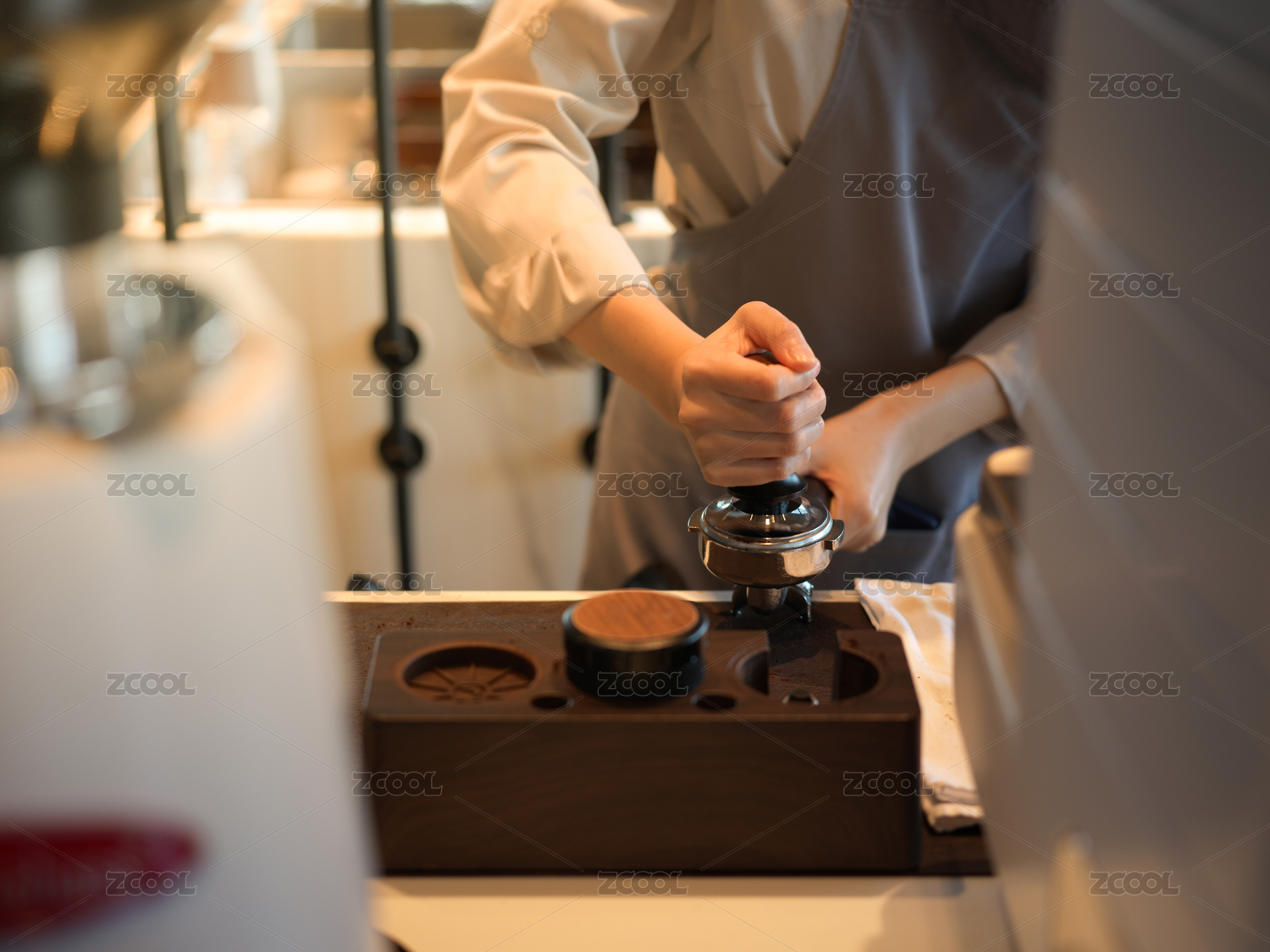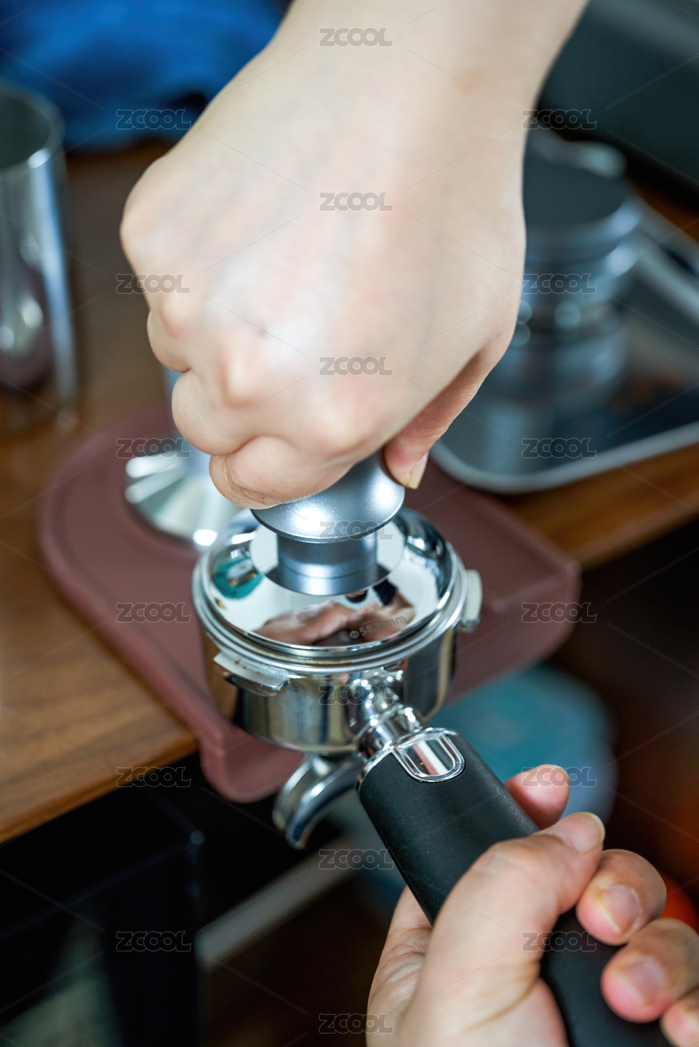 一位咖啡师在使用咖啡机器具制作浓缩咖啡