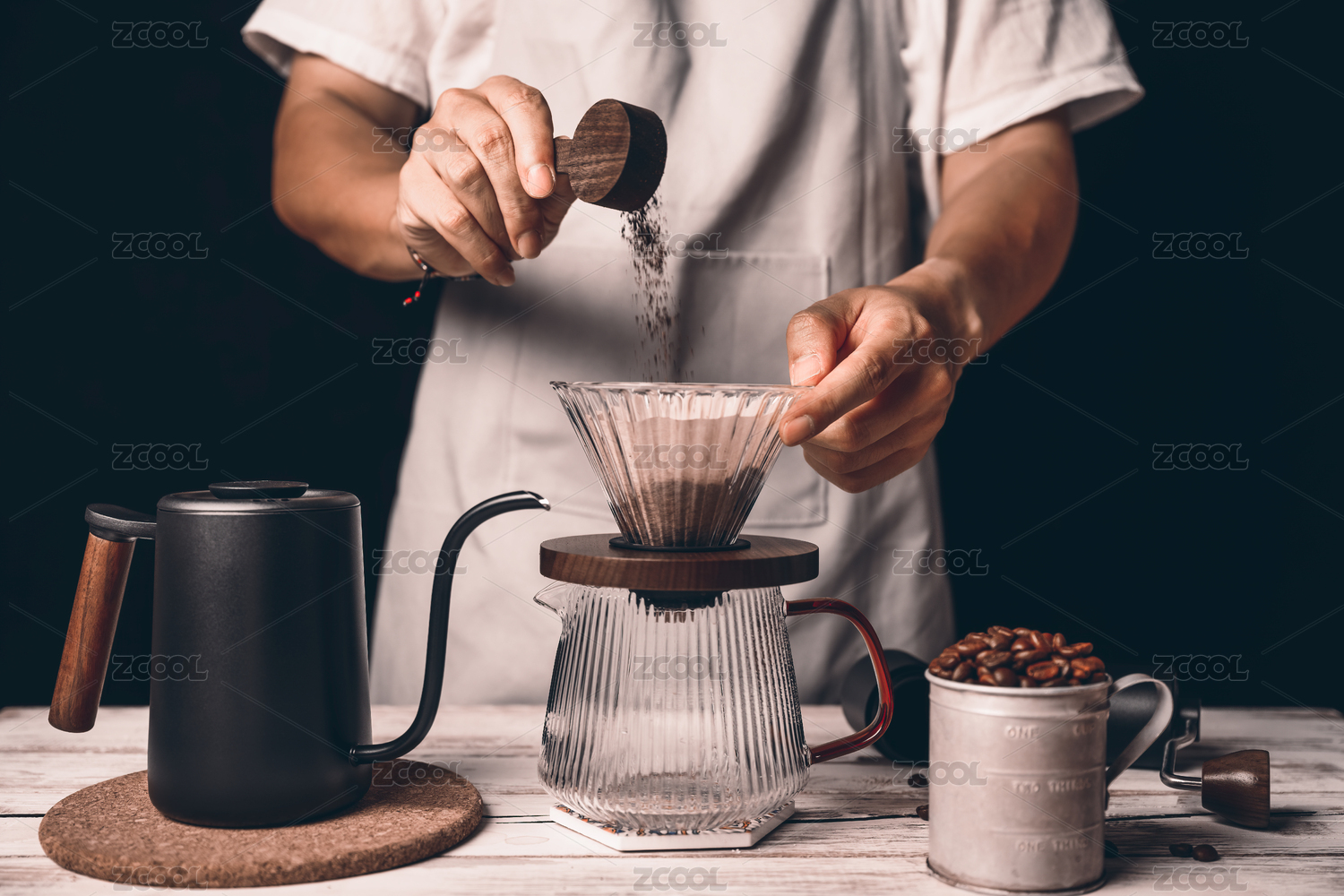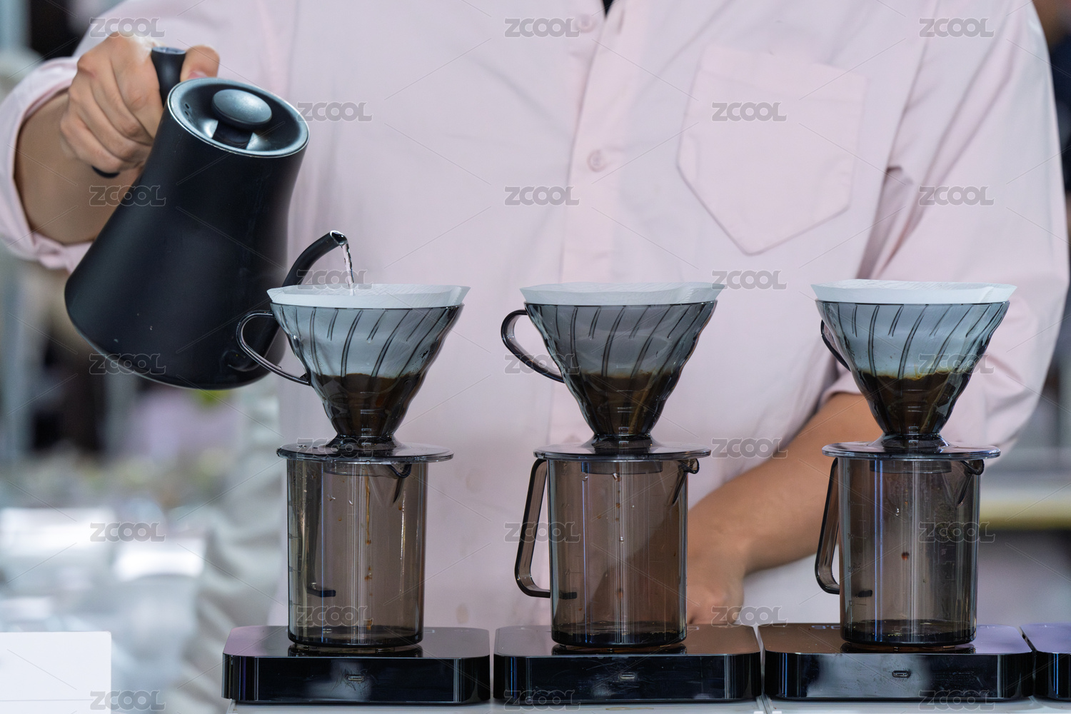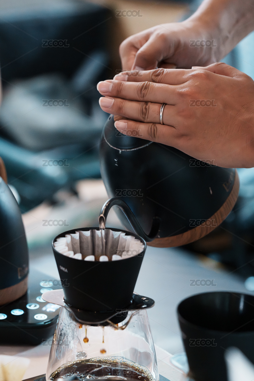 一位咖啡师在使用咖啡机器具制作浓缩咖啡