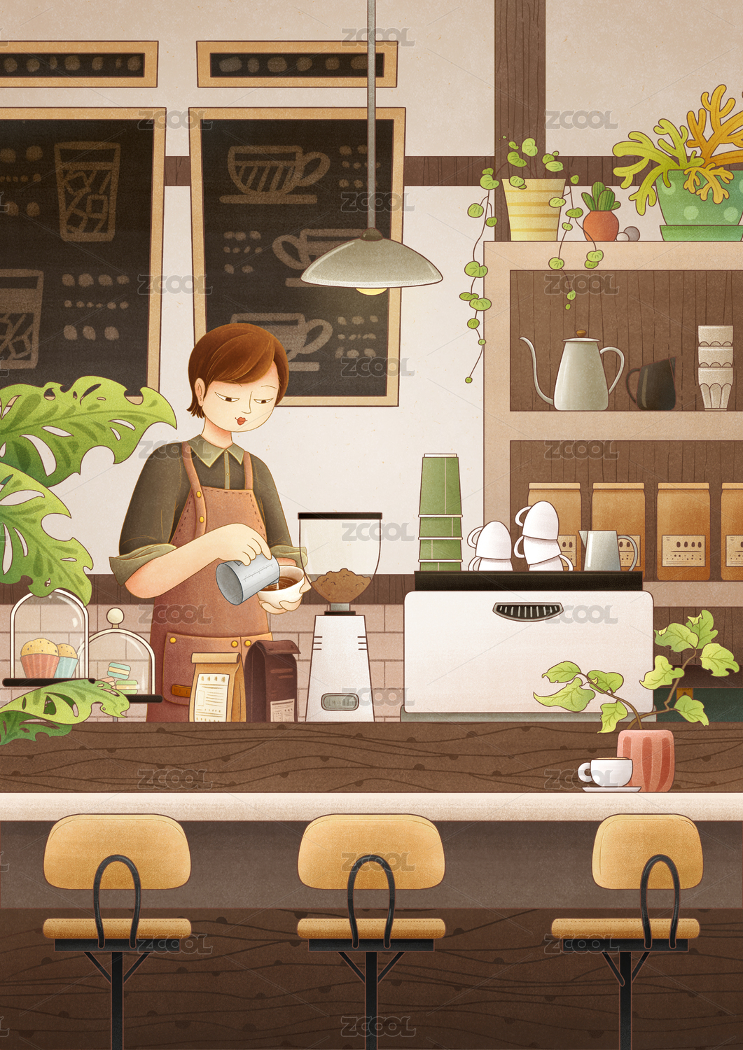 卡通找工作大学生兼职咖啡店咖啡师边框