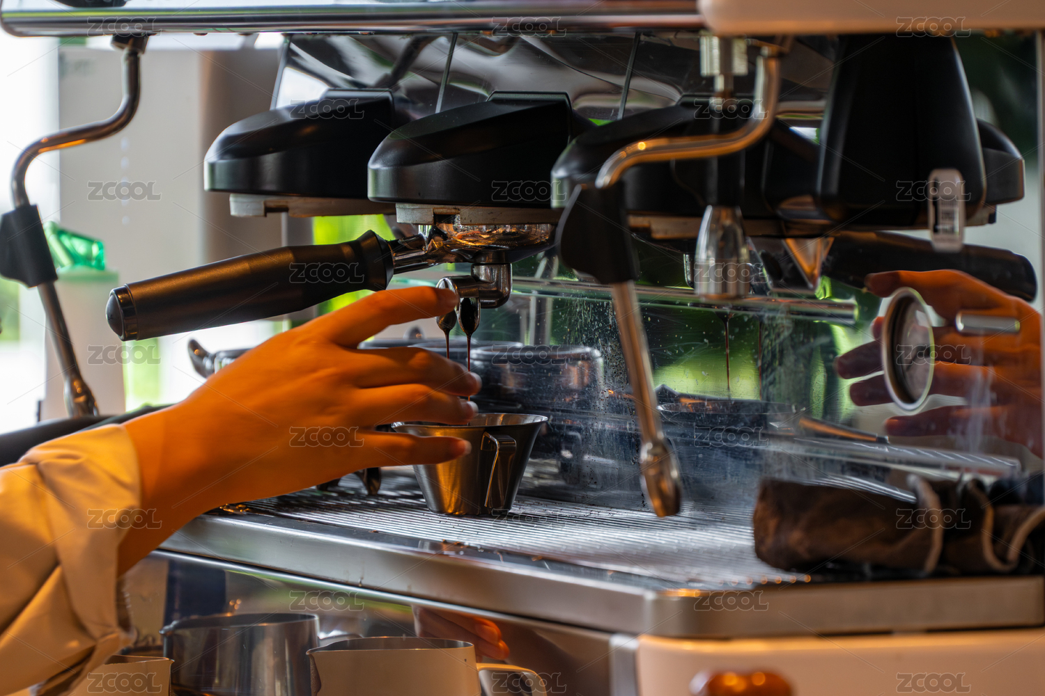 咖啡师正在使用专业咖啡机制作浓缩咖啡