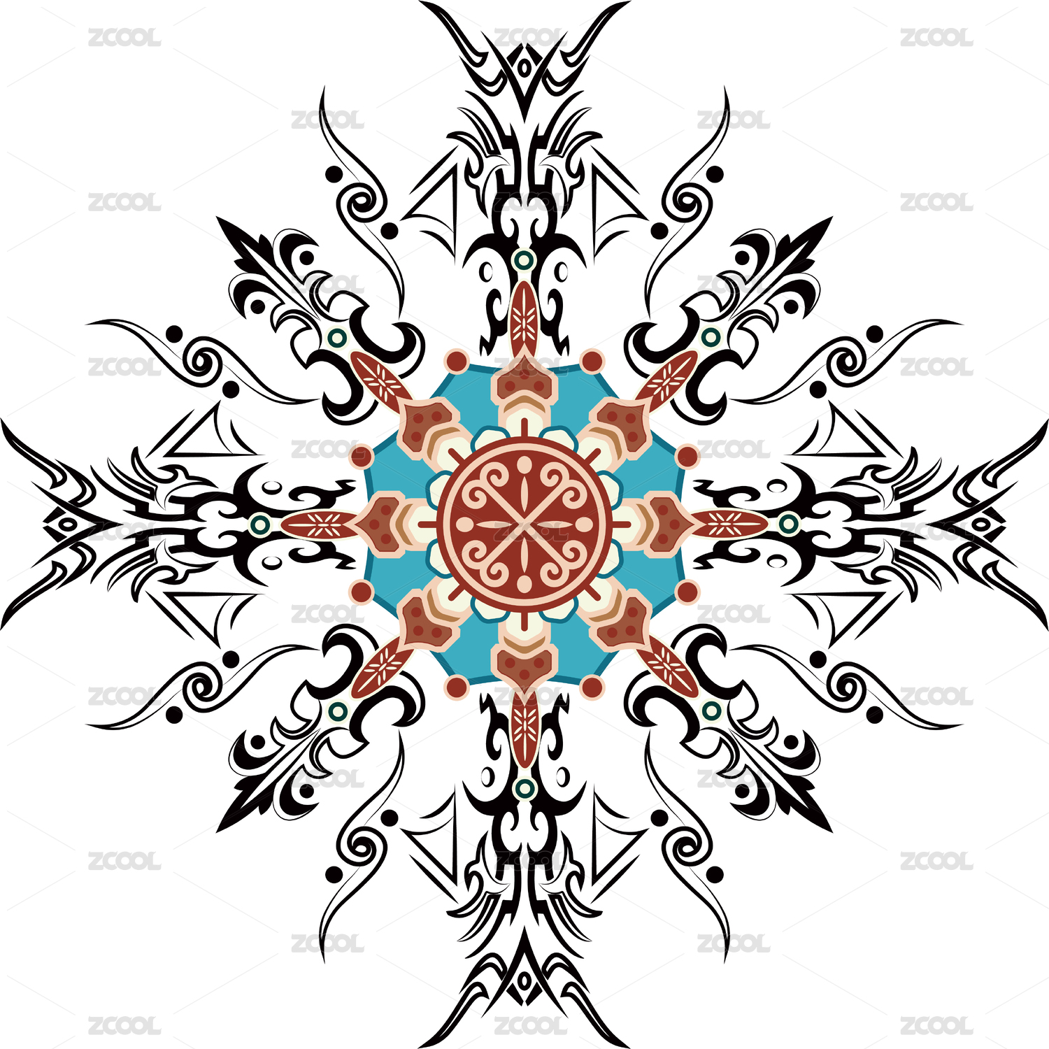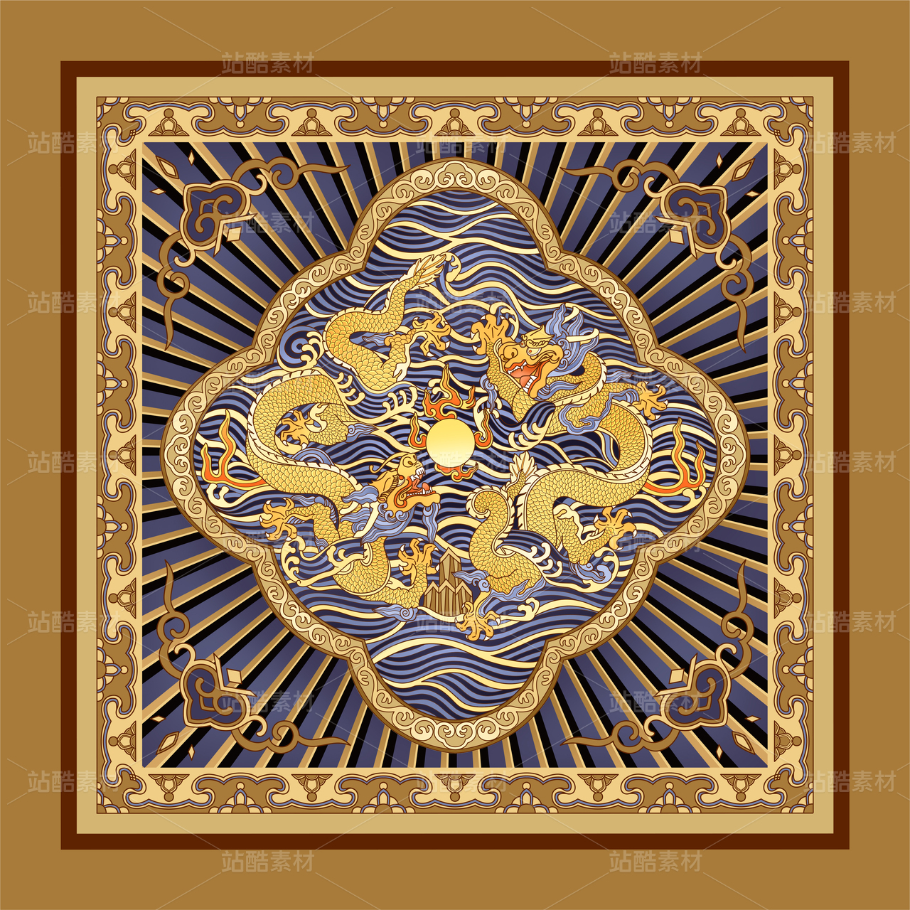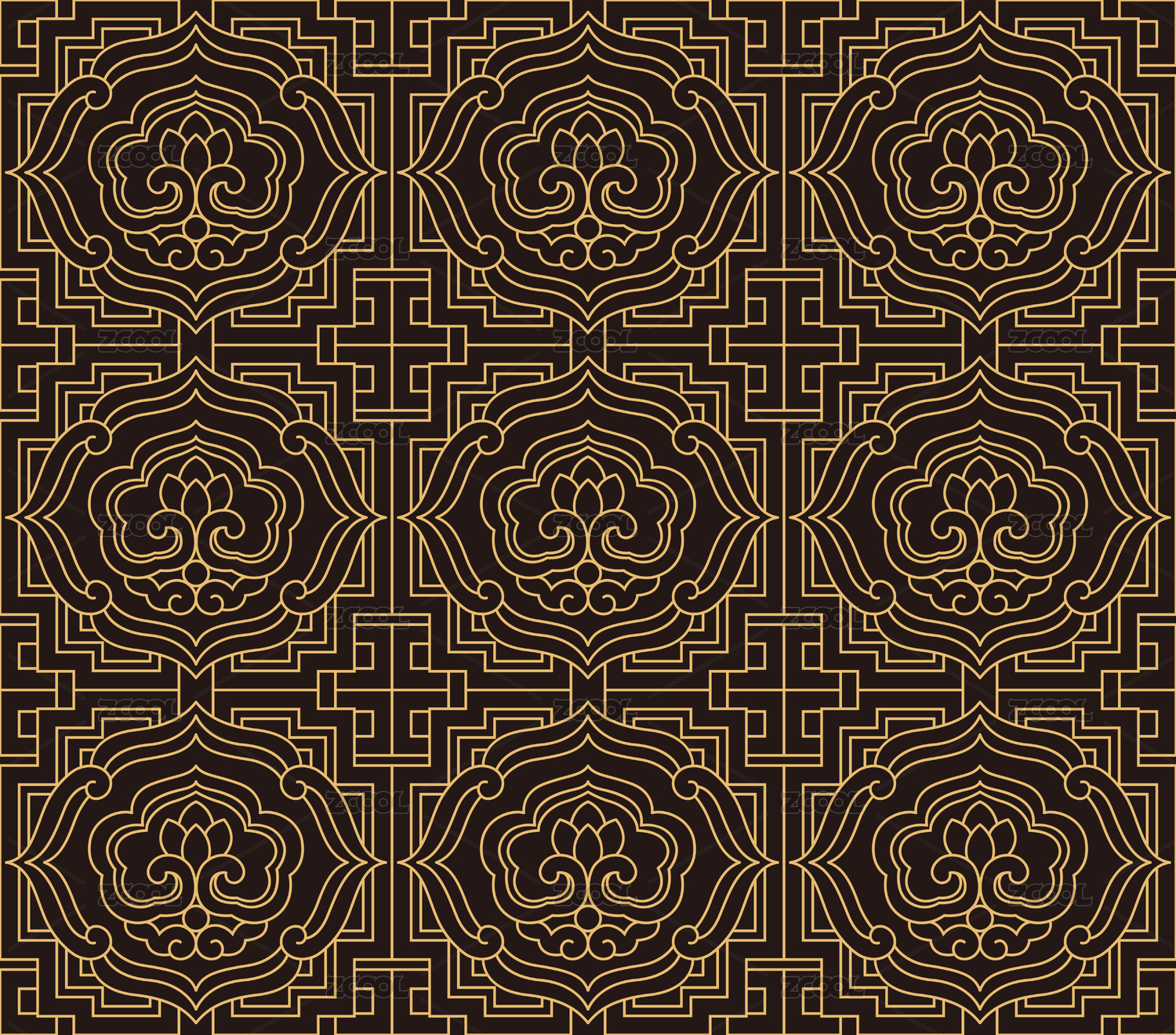 中国传统的装饰纹样图案,黑色背景