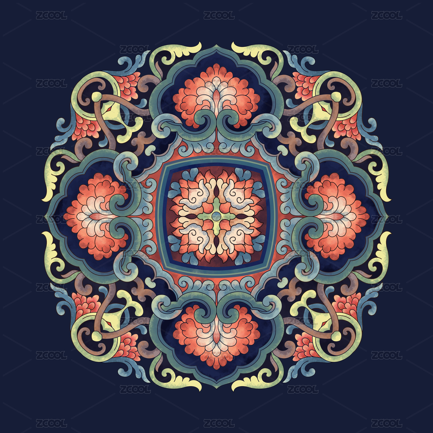 传统花纹中国风团花纹样图案