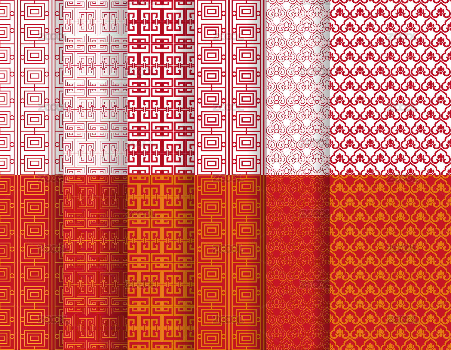 无缝连续的红色传统底纹纹样图案