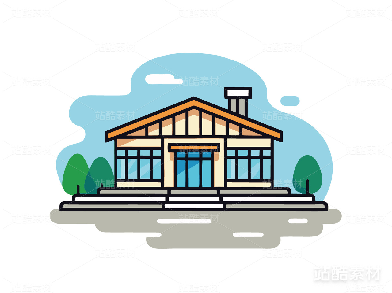 房子建筑旅行旅游扁平化图标矢量插画