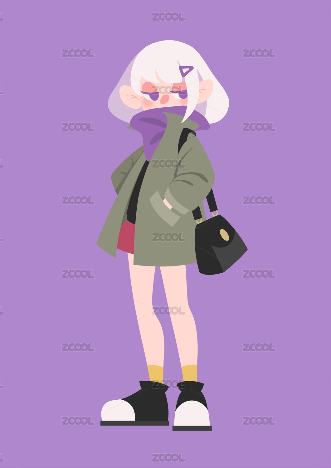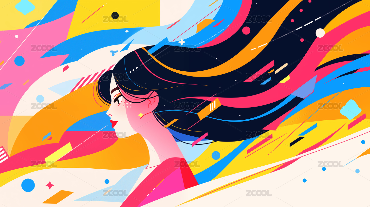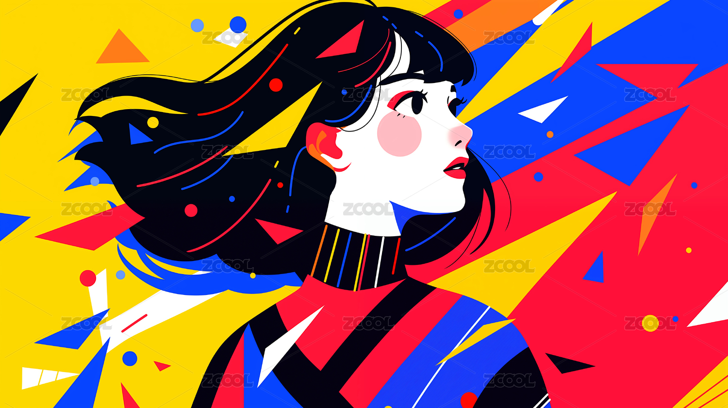 潮流扁平化女孩插画