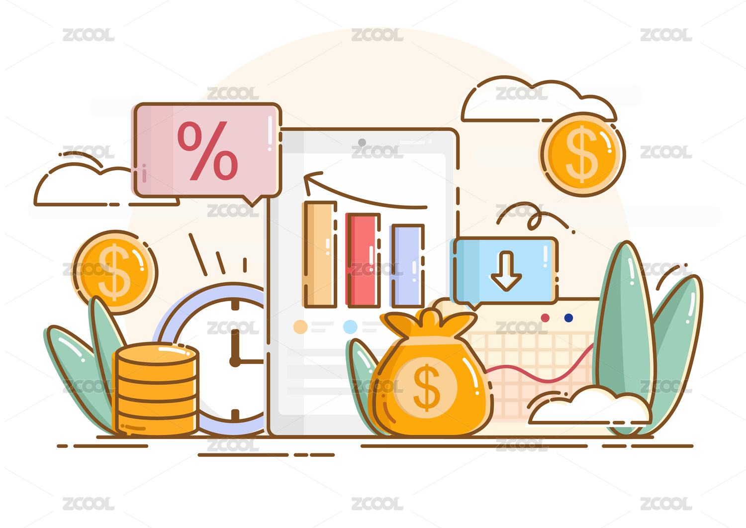 数据与扁平化金融矢量插画