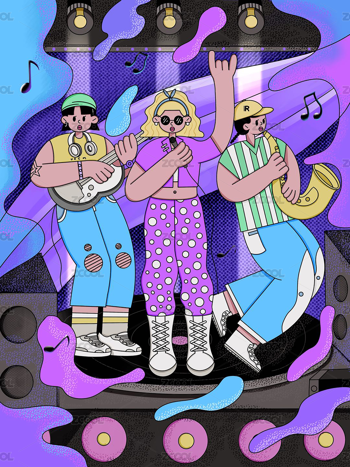 潮流音乐节扁平化插画