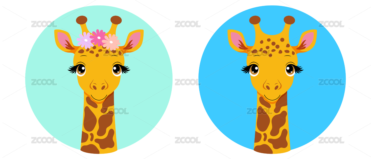 扁平化矢量头戴花朵的长颈鹿情侣头像