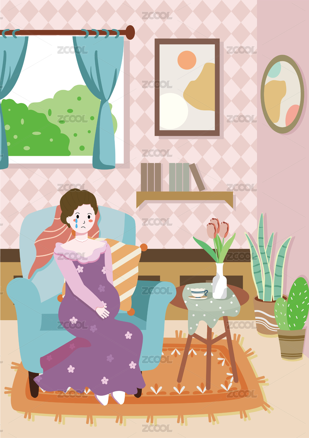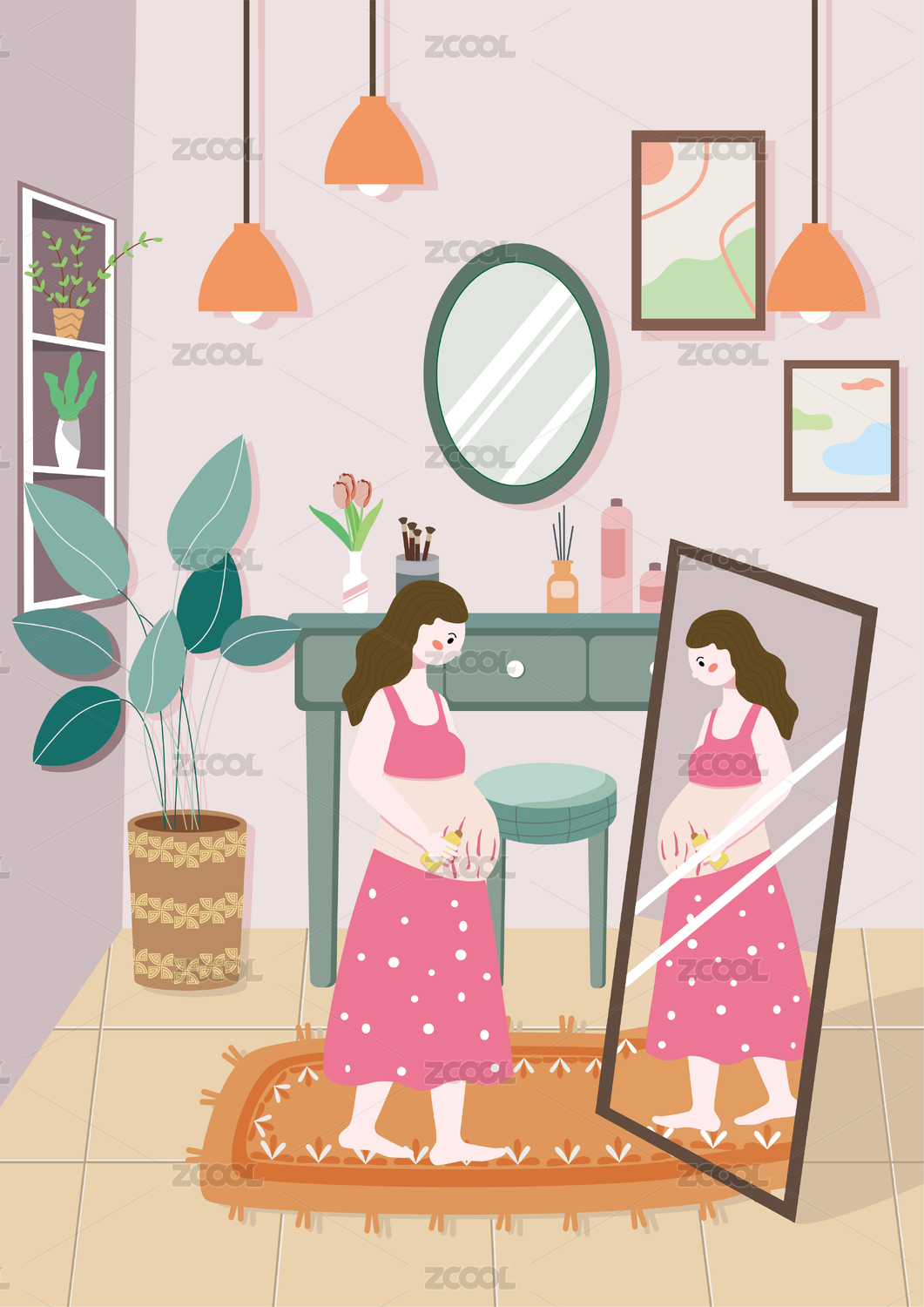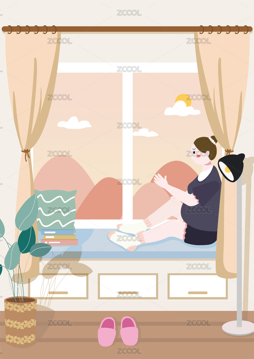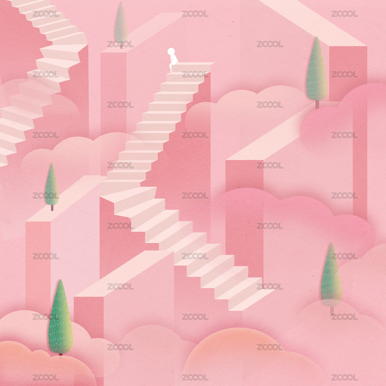 粉色梦幻扁平化手绘插画