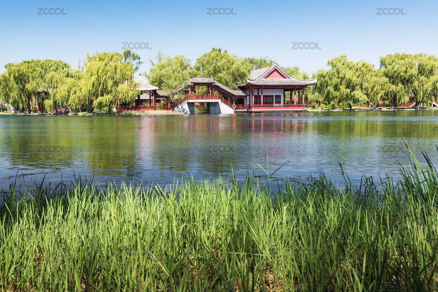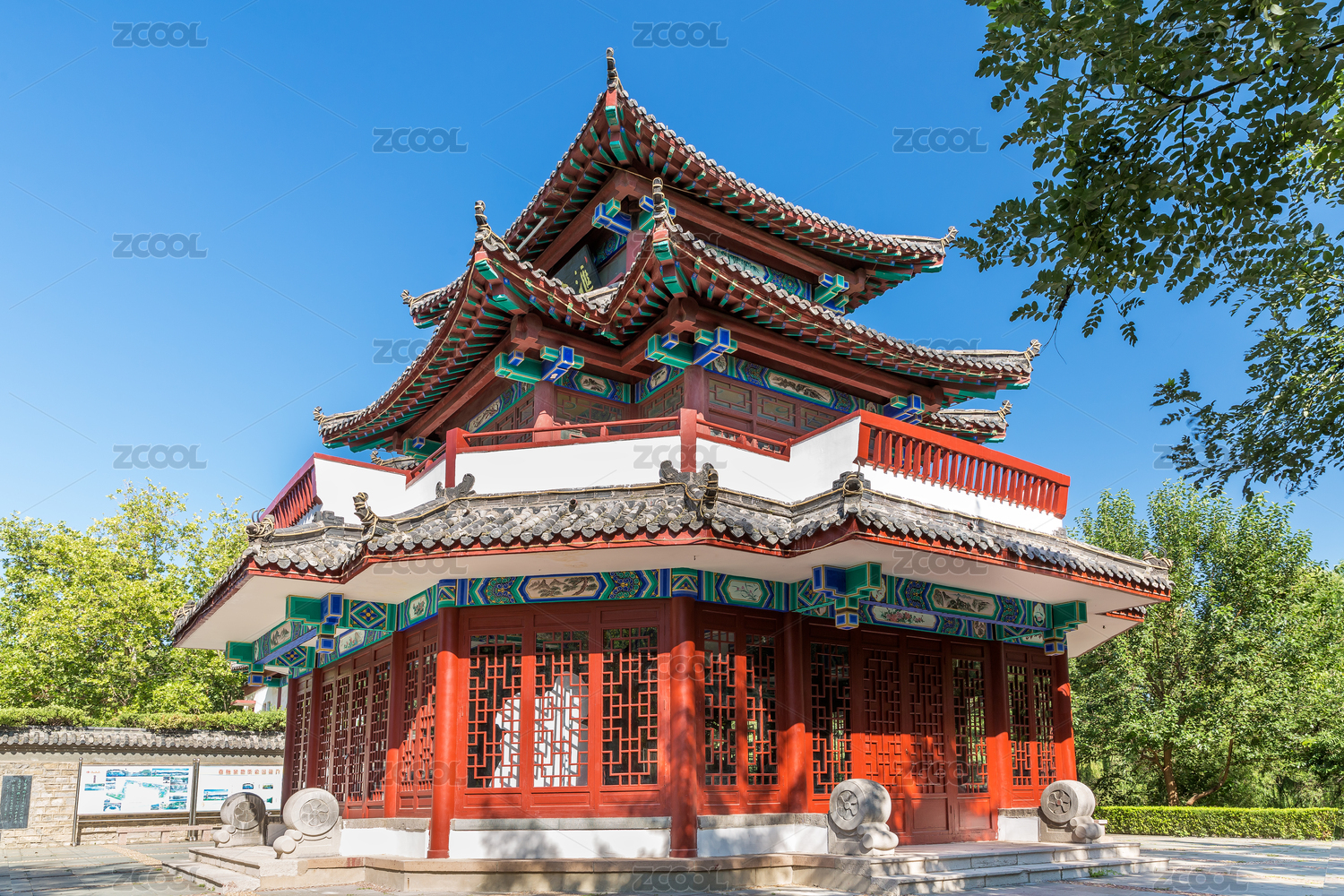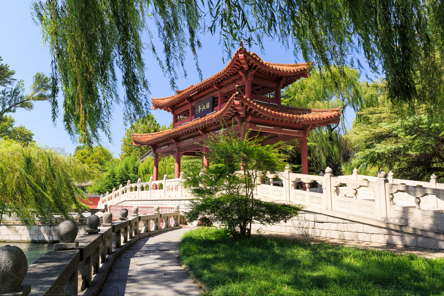 中国山东省济南市章丘百脉泉公园的复古建筑