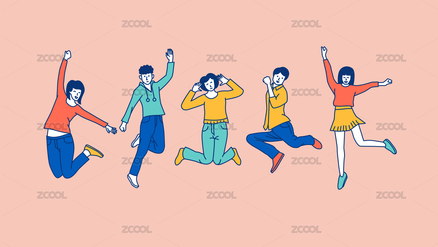 卡通手绘金币推广活动卡通男女跳跃素材插画