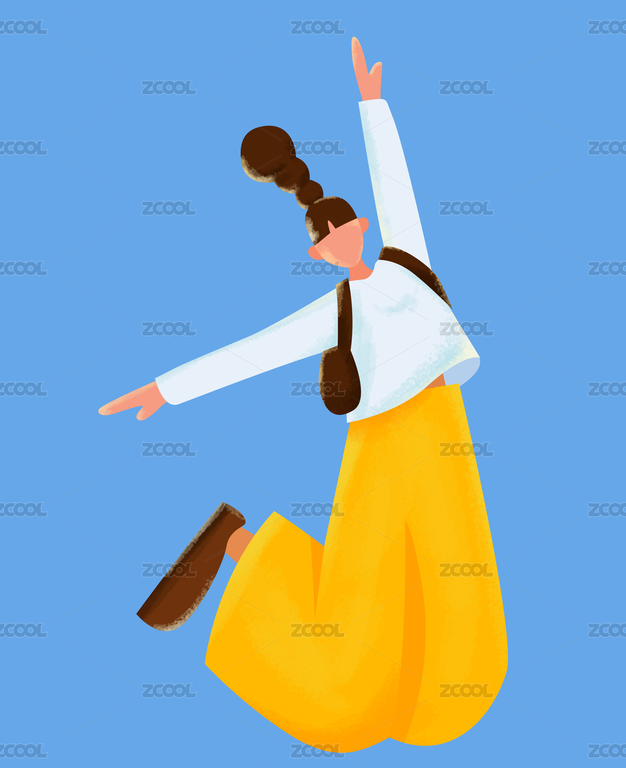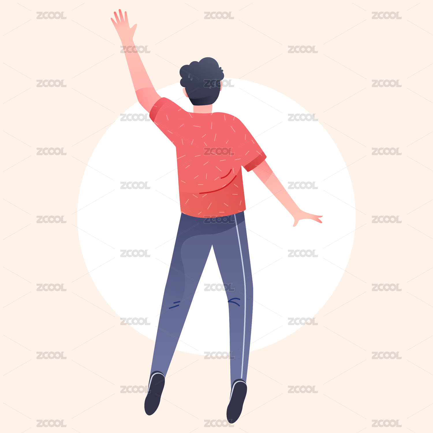 卡通手绘人物跳跃举牌促销购物推广插画素材