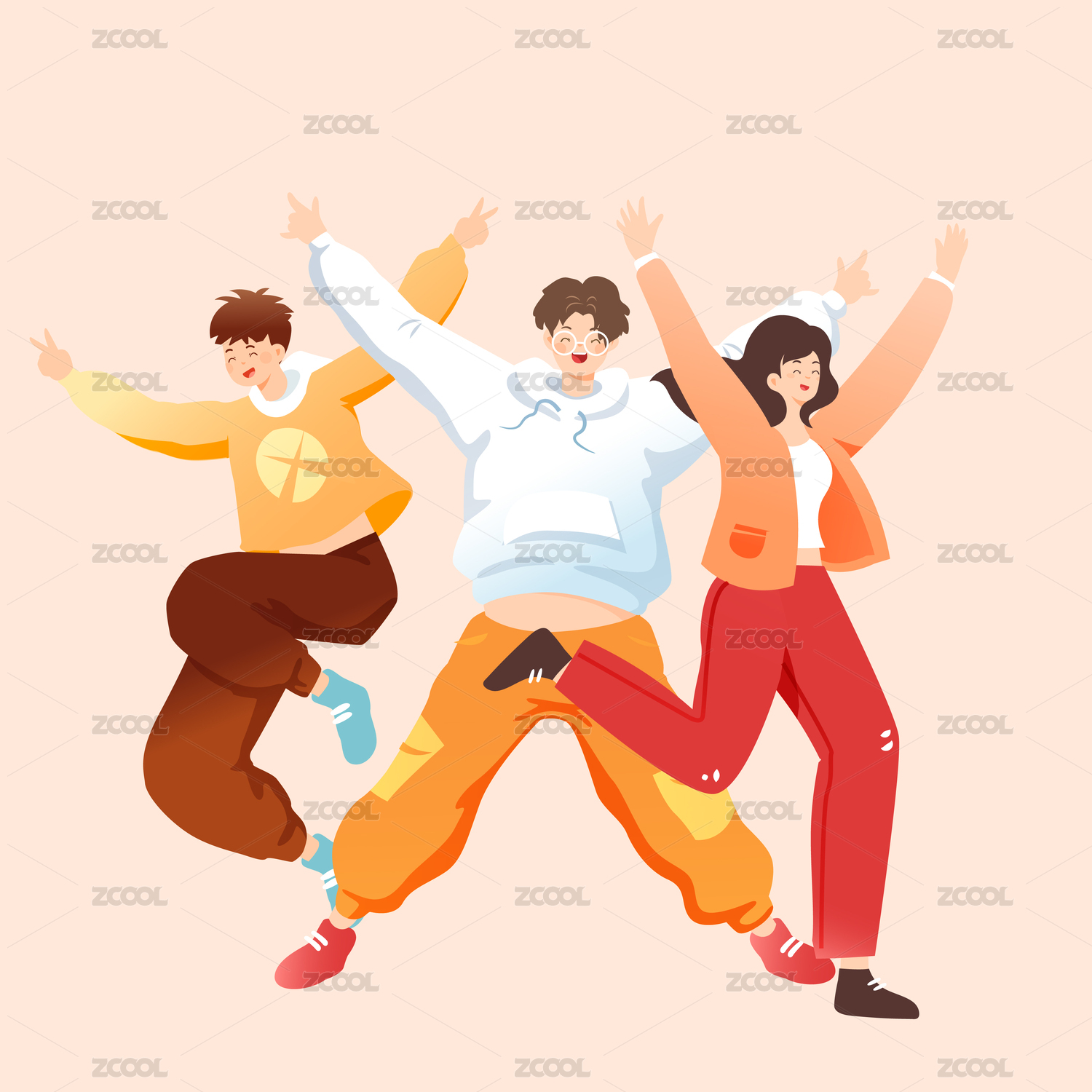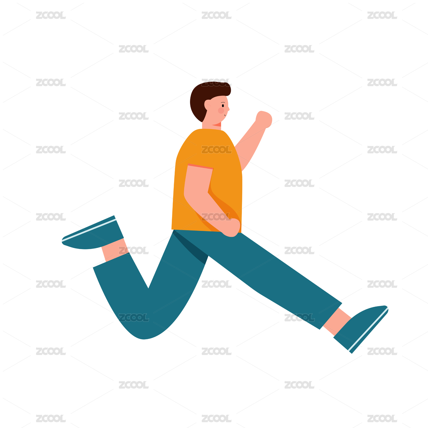卡通青少年人物帅哥开心高兴跳跃矢量插画
