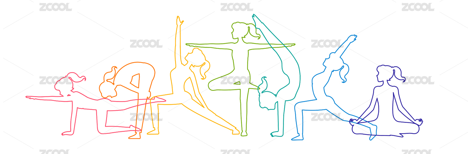 瑜伽女孩人物彩色剪影线条插画