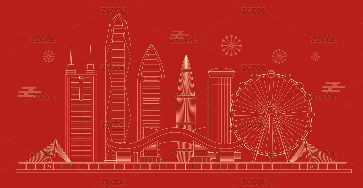 深圳地标建筑线条插画