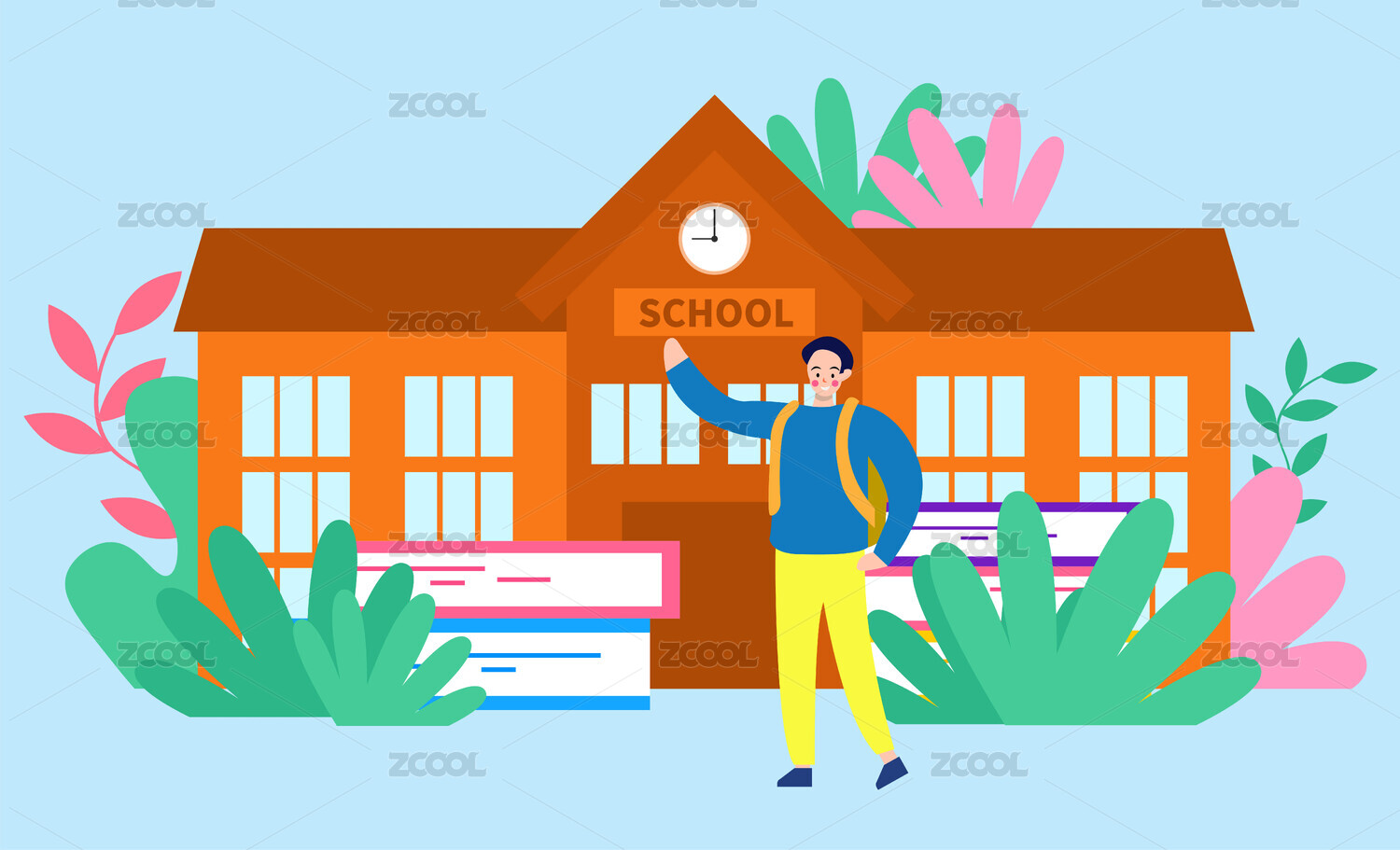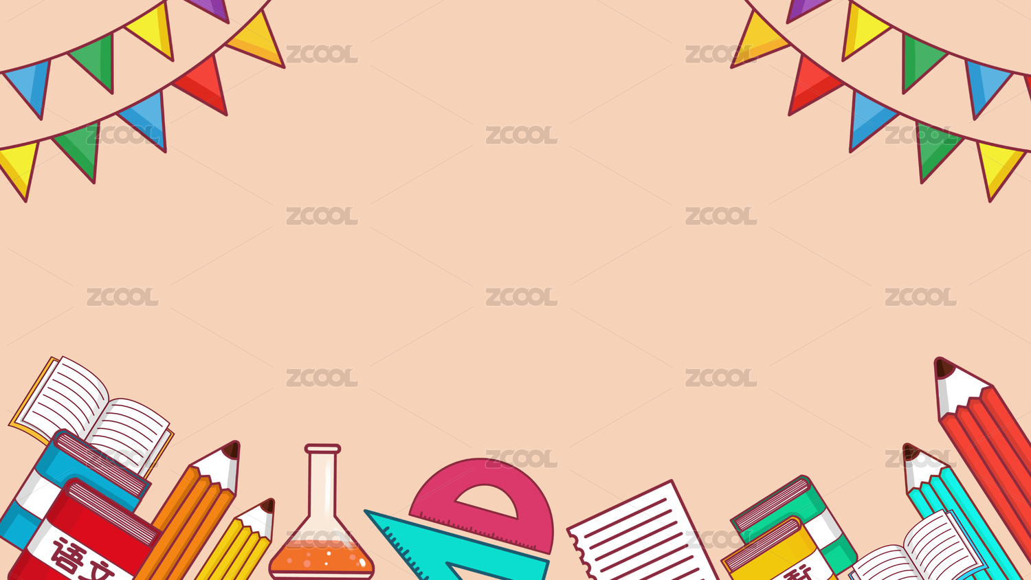 卡通学校和文具课本插画背景