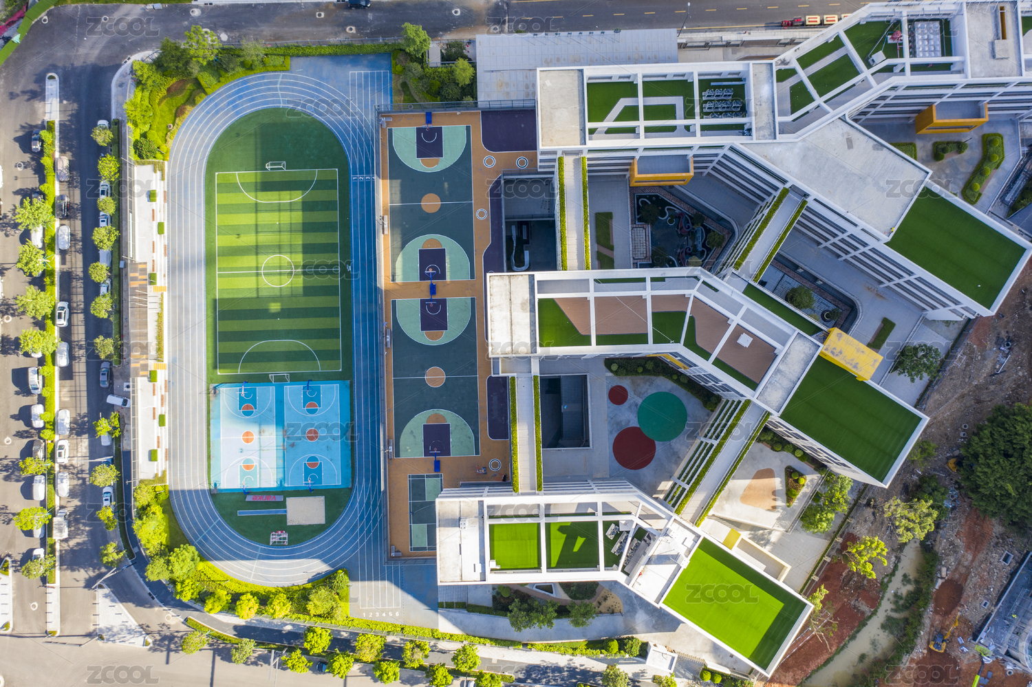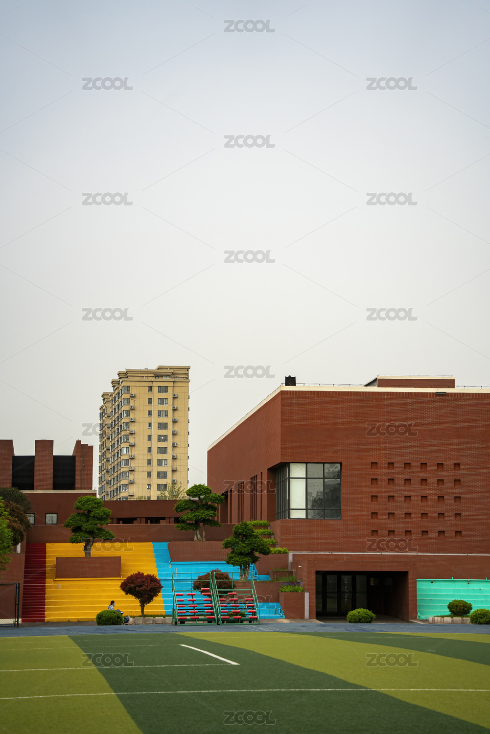 现代学校建筑和操场