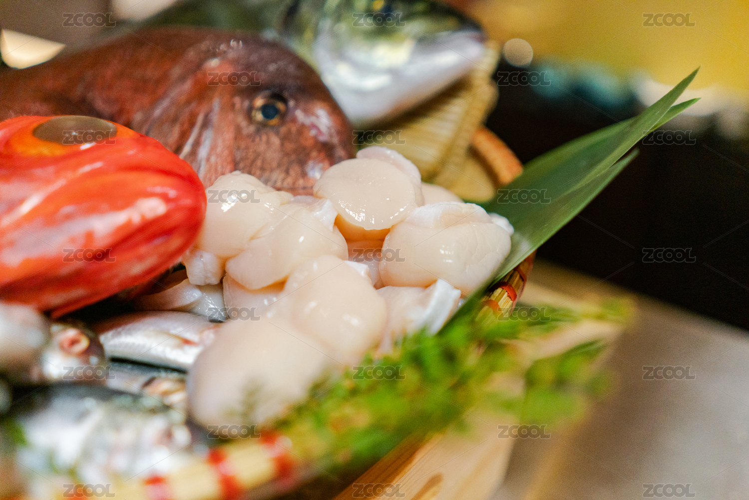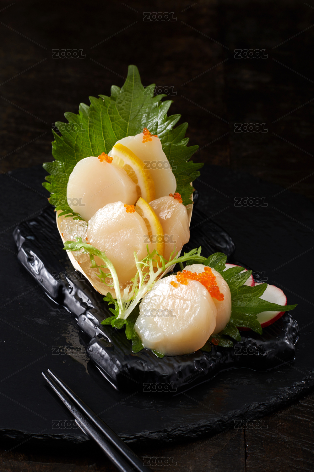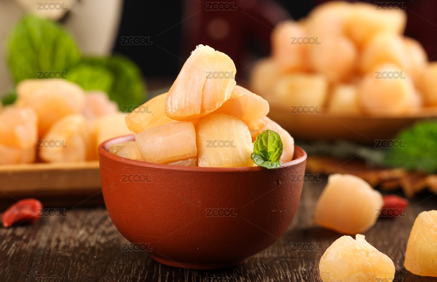 黑松露山药炒元贝摆放在黑色鹅卵石上