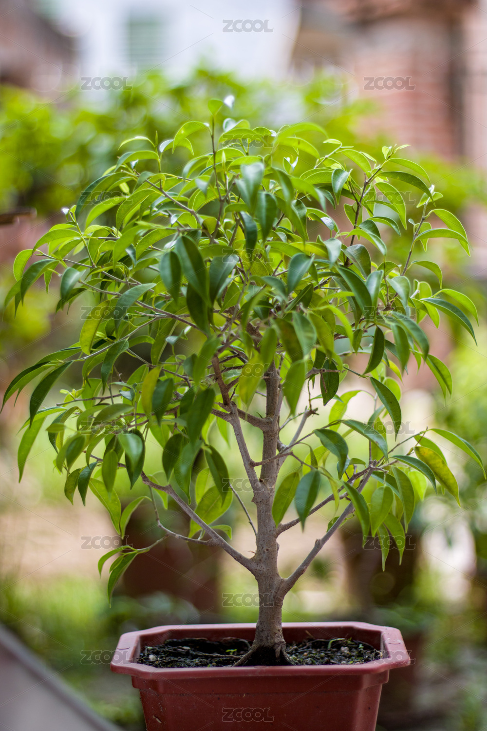 绿色背景榕树盆景